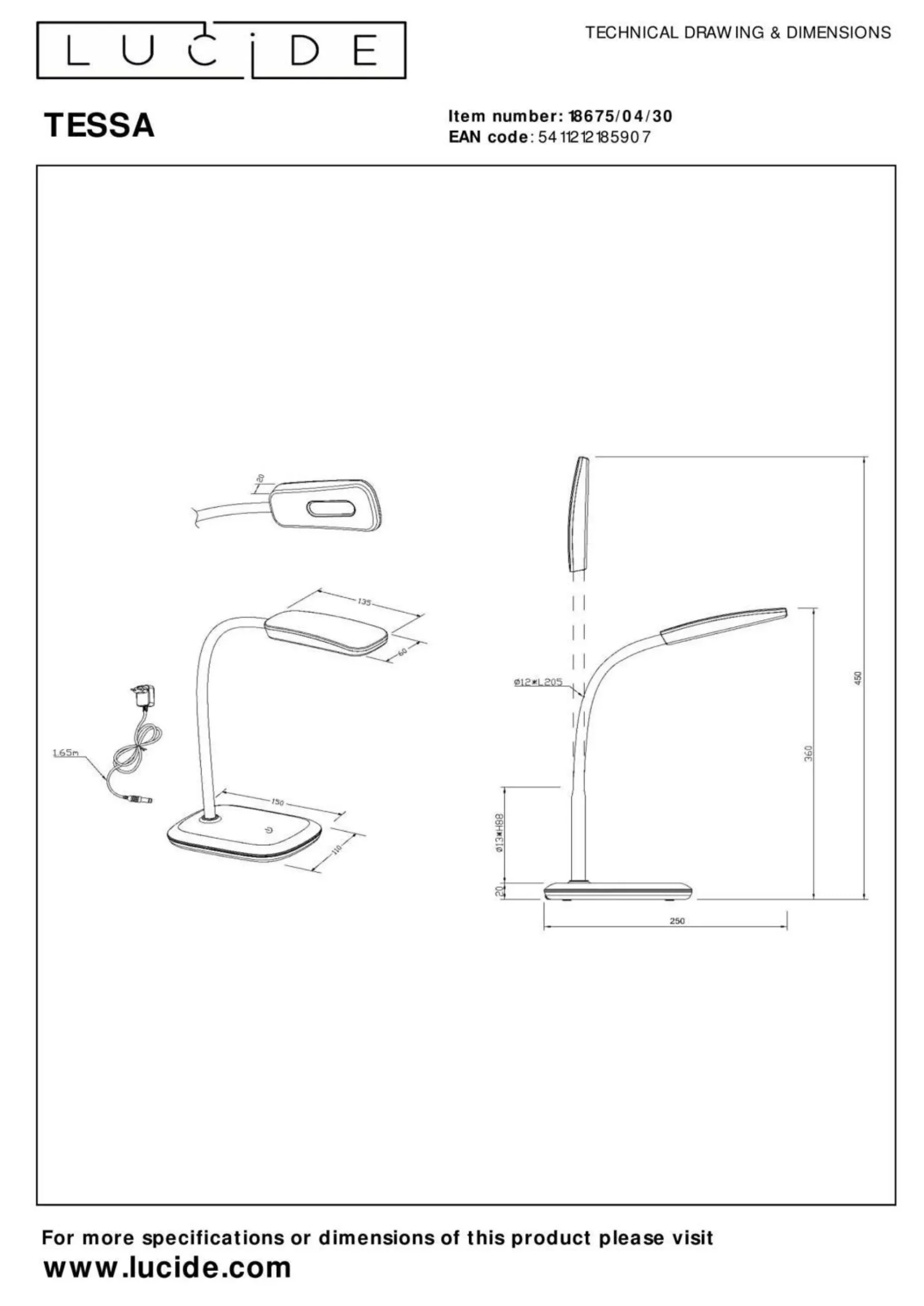 · Mit Tessa gibt es keinen Grund mehr, sich nicht zu konzentrieren. Sie wirft ein helles weißes Licht von bis zu 3.000 K auf Ihre Bücher oder Ihren Laptop, damit Ihre Aufmerksamkeit nicht nachlässt. Diese moderne Schreibtischlampe lässt sich leicht in der Höhe verstellen und ist mit einem flexiblen Lesearm ausgestattet. So können Sie den Lichtstrahl sanft in die richtige Position bringen. Außerdem können Sie die Helligkeit ganz einfach über den Berührungssensor an der Leuchte einstellen. Weniger Ablenkungen, doppelte Konzentration. Mit Tessa an Ihrer Seite erzielen Sie die besten Ergebnisse.