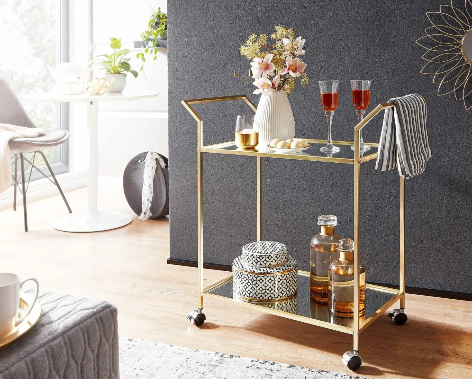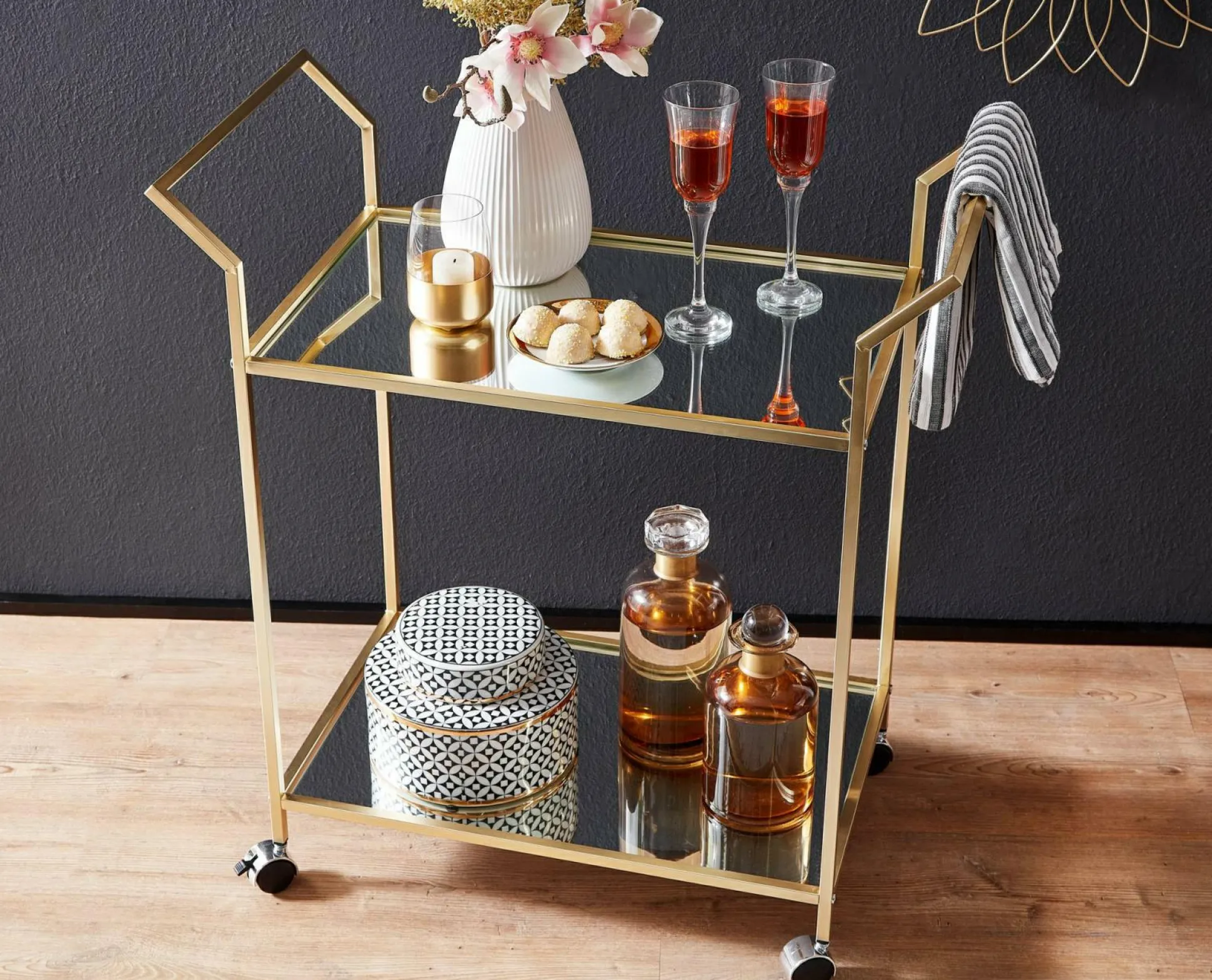 · Service mit Stil – Der überaus nützliche Serviertisch ist viel mehr als nur ein Rolltisch. Tonic werden auf dem Barwagen stilvoll serviert.