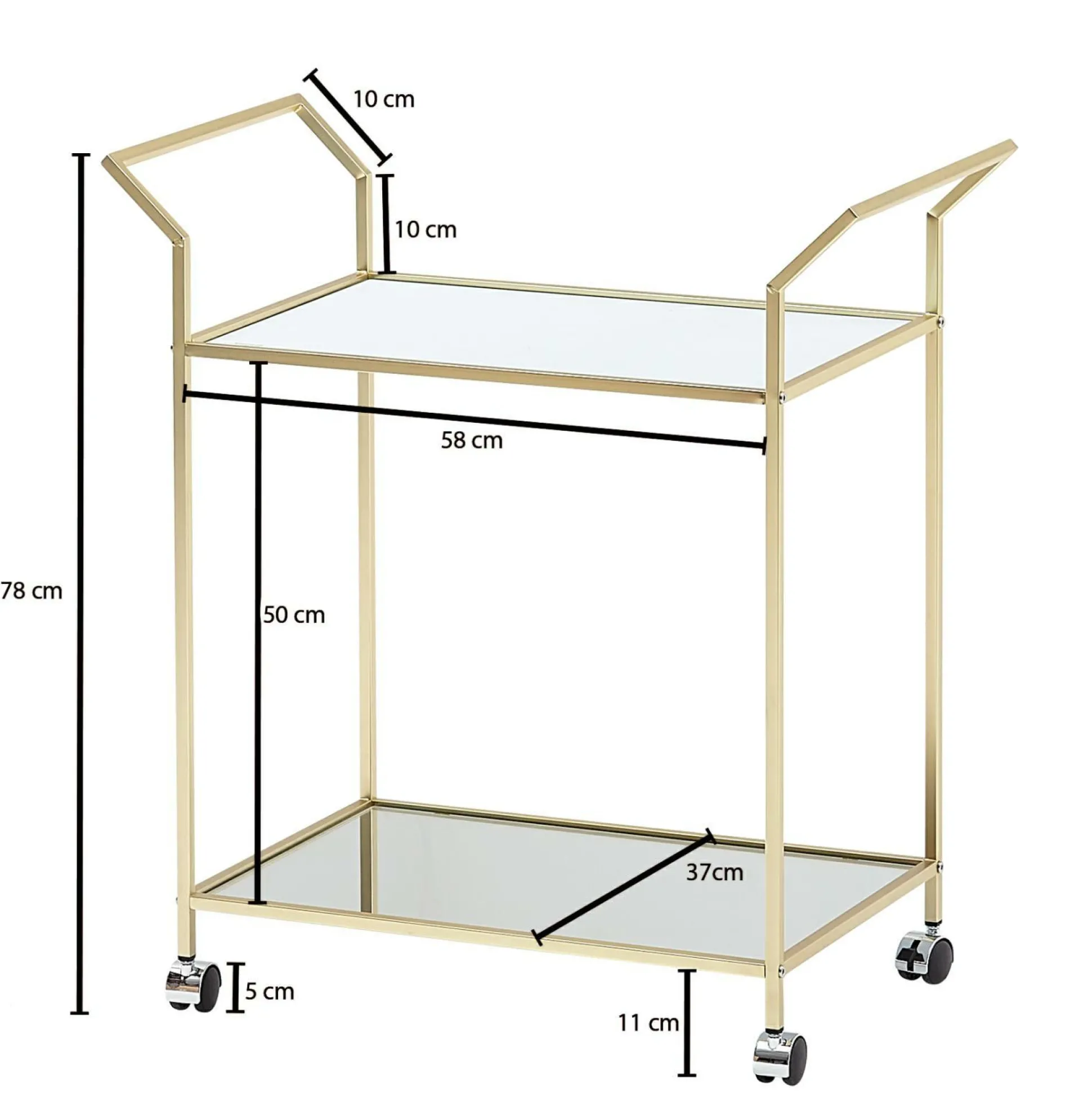 · Abmessungen – Abmessungen je Ablagefläche (BxT): 58 x 37 cm, Abstand zwischen den Ablageflächen: 50 cm.