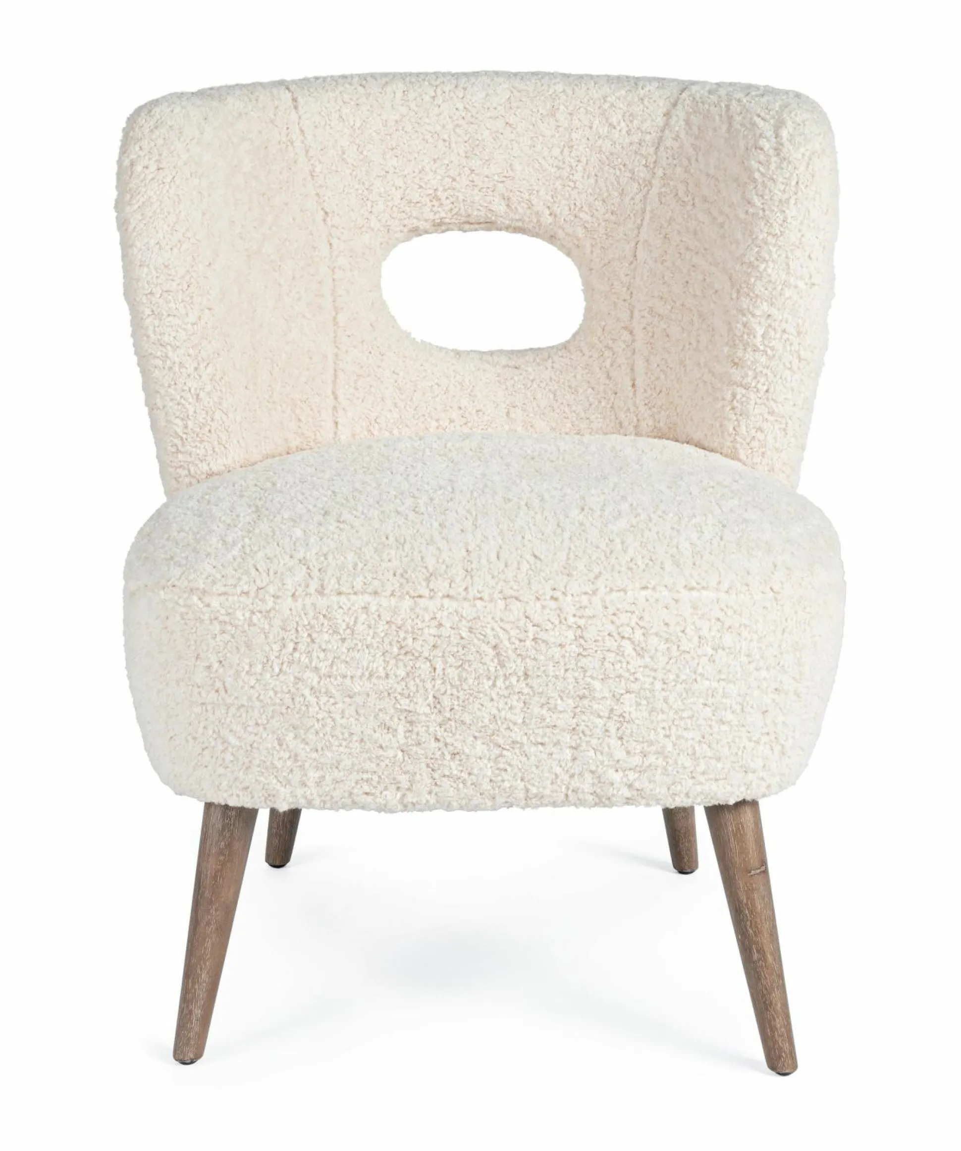 · Sessel aus Kiefernholz. Polster aus Polyurethanschaum mit einer Dichte von 24 Kg/M3. Bezug Polyester mit Wollstoff-Effekt, nicht abziehbar. Füße aus Gummibaum. Einfache Montage.