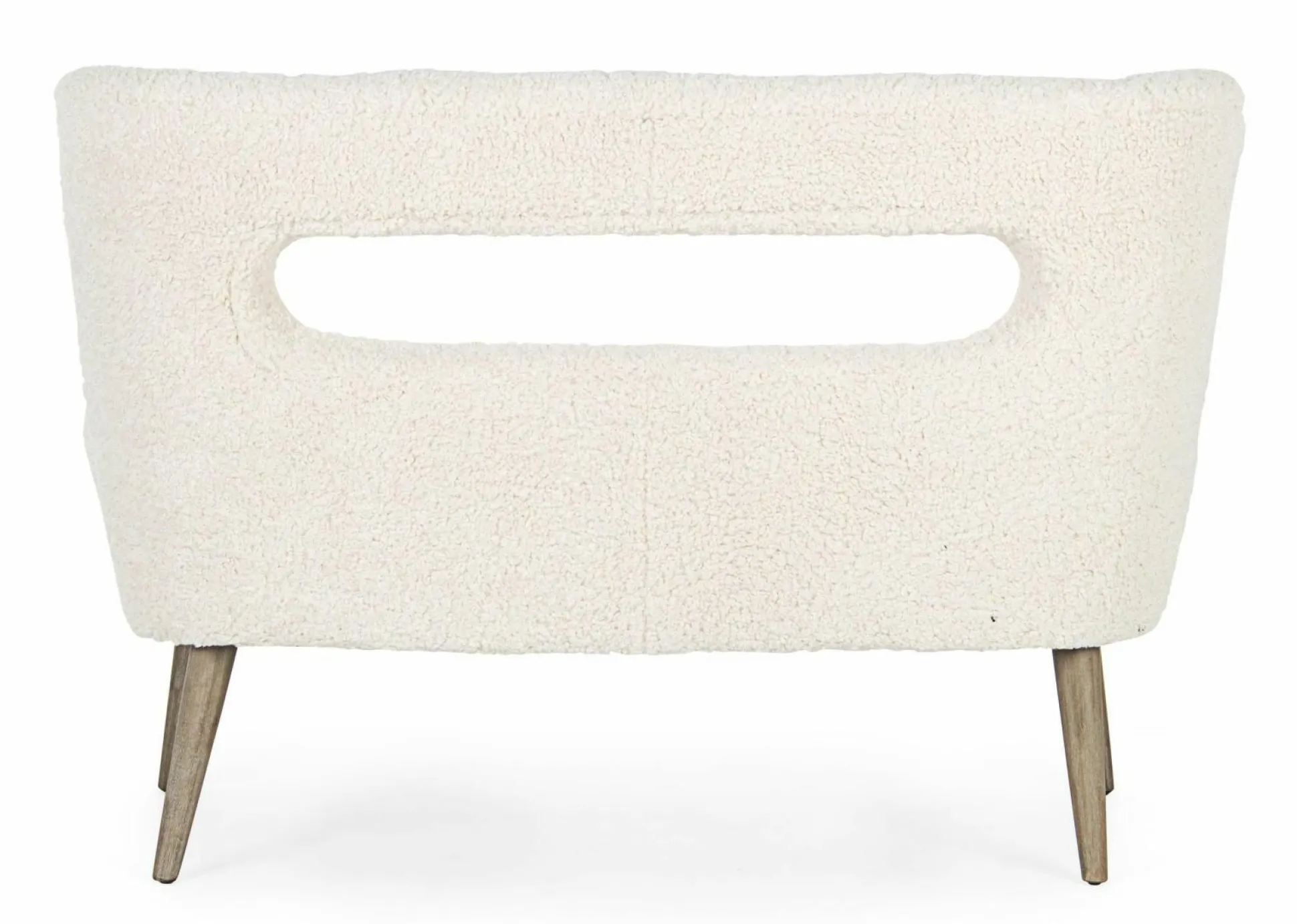 · Sofa aus Kiefernholz. Polster aus Polyurethanschaum mit einer Dichte von 24 Kg/M3. Bezug Polyester mit Wollstoff-Effekt, nicht abziehbar. Füße aus Gummibaum. Einfache Montage.