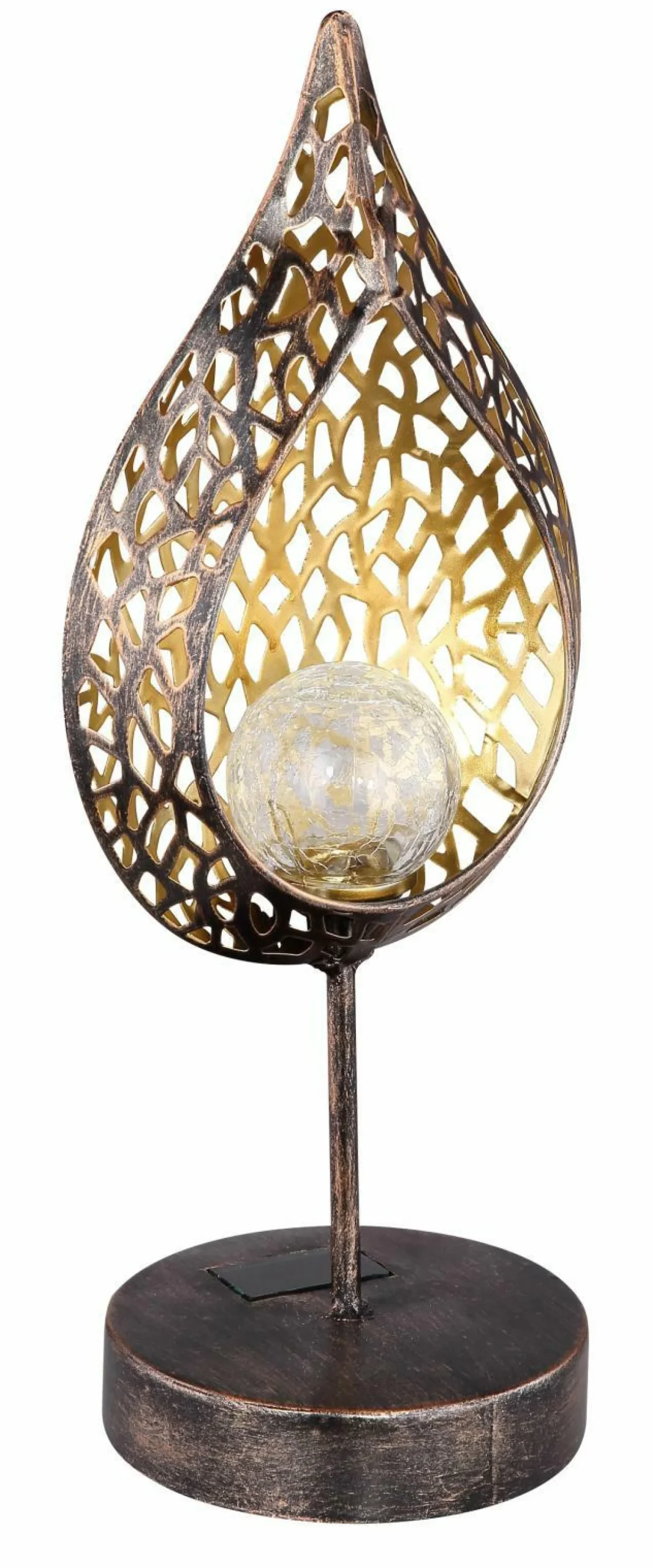 Die Solarleuchte des Herstellers Globo Lighting überzeugt vor allem durch ihre vielseitigen Einsatzmöglichkeiten. Sie präsentiert sich in einer Optik aus goldfarbenem Metall und besteht zudem aus patiniertem antiken Glas. Nachdem sich die Leuchte am Tag aufgeladen hat, schützt sie in der Dunkelheit vor Stolperfallen aller Art. Ausgestattet mit der Schutzart IP44 ist die Solarleuchte Spritzwasser geschützt.