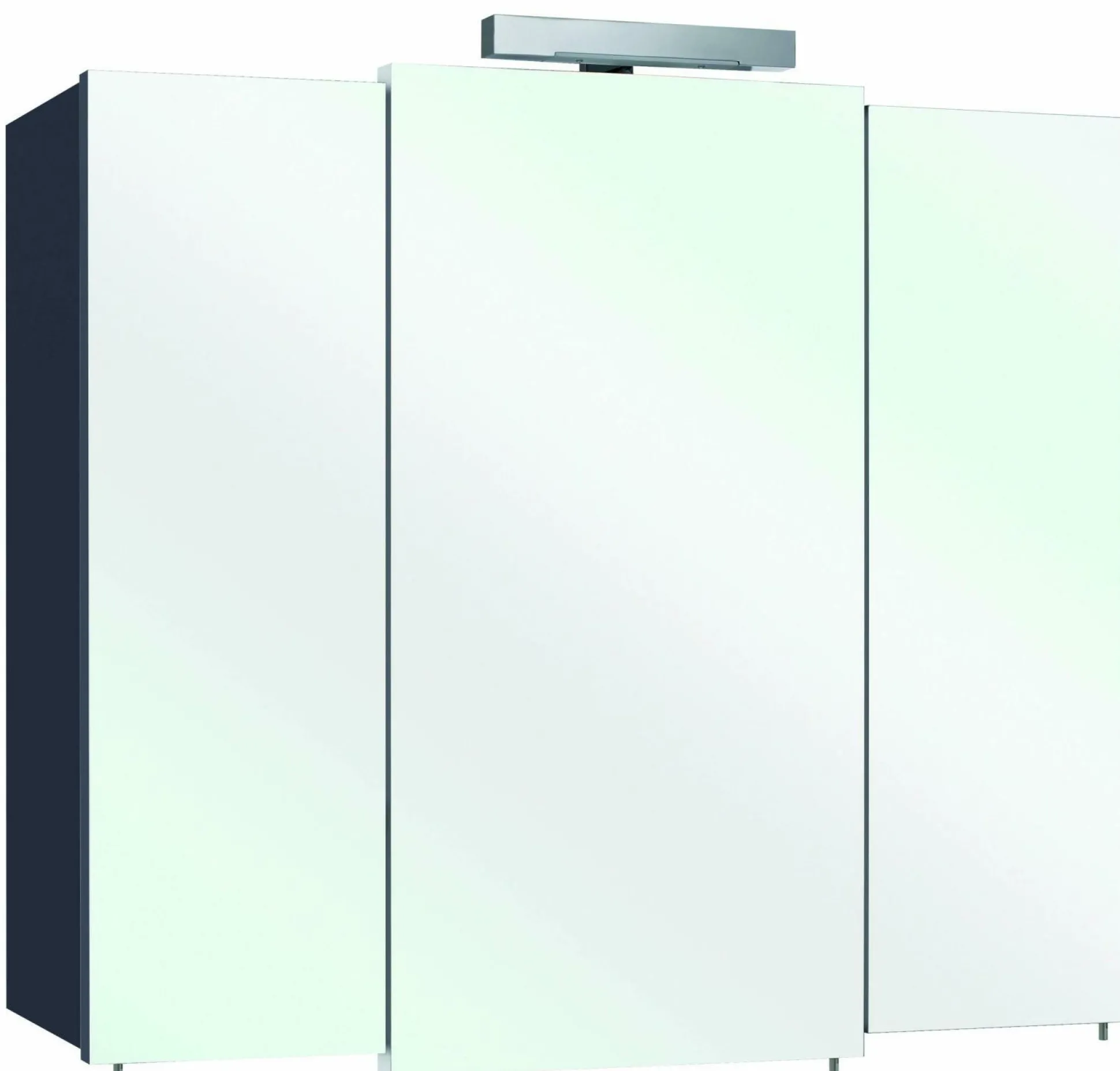 Der geräumige Badezimmerschrank wird durch die drei Spiegeltüren ausgezeichnet. Hinter diesen sorgen sechs Einlegeböden für eine praktische Aufteilung. So entsteht nützlicher Stauraum für allerhand Badutensilien Ihrer Wahl.