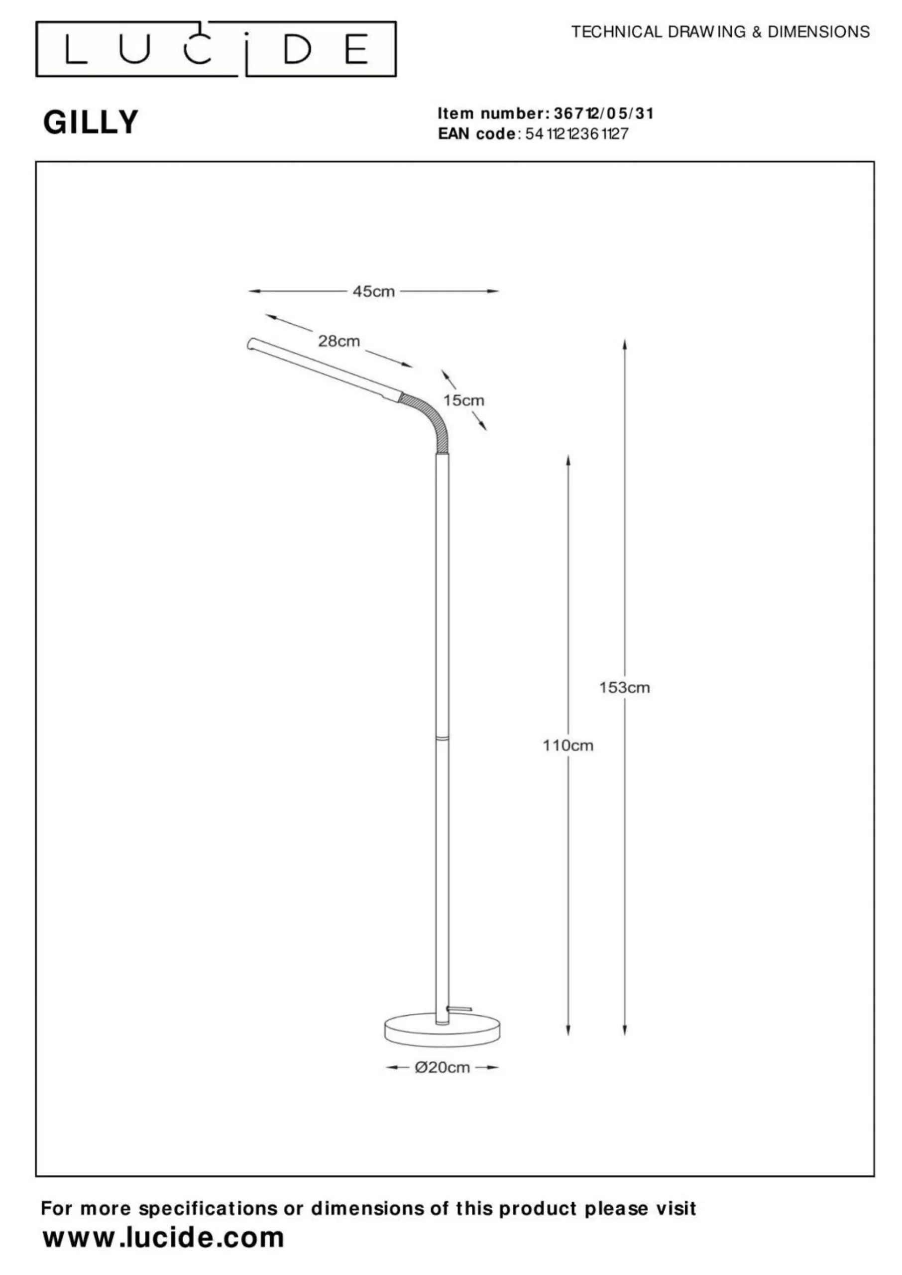 Setzen Sie mit dieser Stehleuchte strahlende Akzente in Ihrer Einrichtung. Ein überzeugendes Wohngefühl und gelungene Gestaltung zeichnen die Stehlampe der Marke LUCiDE aus. Das Modell GILLY fügt sich mit seinem schönen Stil ideal in jeden Raum ein und stellt eine angenehme Atmosphäre her. Es hat eine Länge von 20 Zentimetern, eine Breite von insgesamt 45 Zentimetern sowie eine Höhenabmessung von 153 Zentimetern. Die Stehleuchte überzeugt mit der Qualität des verwendeten Metalls. In Ihrem Zimmer kommt das Modell GILLY besonders schön zur Geltung und kreiert eine wohnliche Atmosphäre. Es ist mit einer FEST-Fassung versehen. Das moderne Design harmoniert optimal mit nahezu jedem Einrichtungskonzept. Jeglicher Raum wird dank des angenehmen Lichtes der Stehleuchte ideal präsentiert. Diese Stehlampe schenkt Ihren vier Wänden eine wohnliche Atmosphäre.