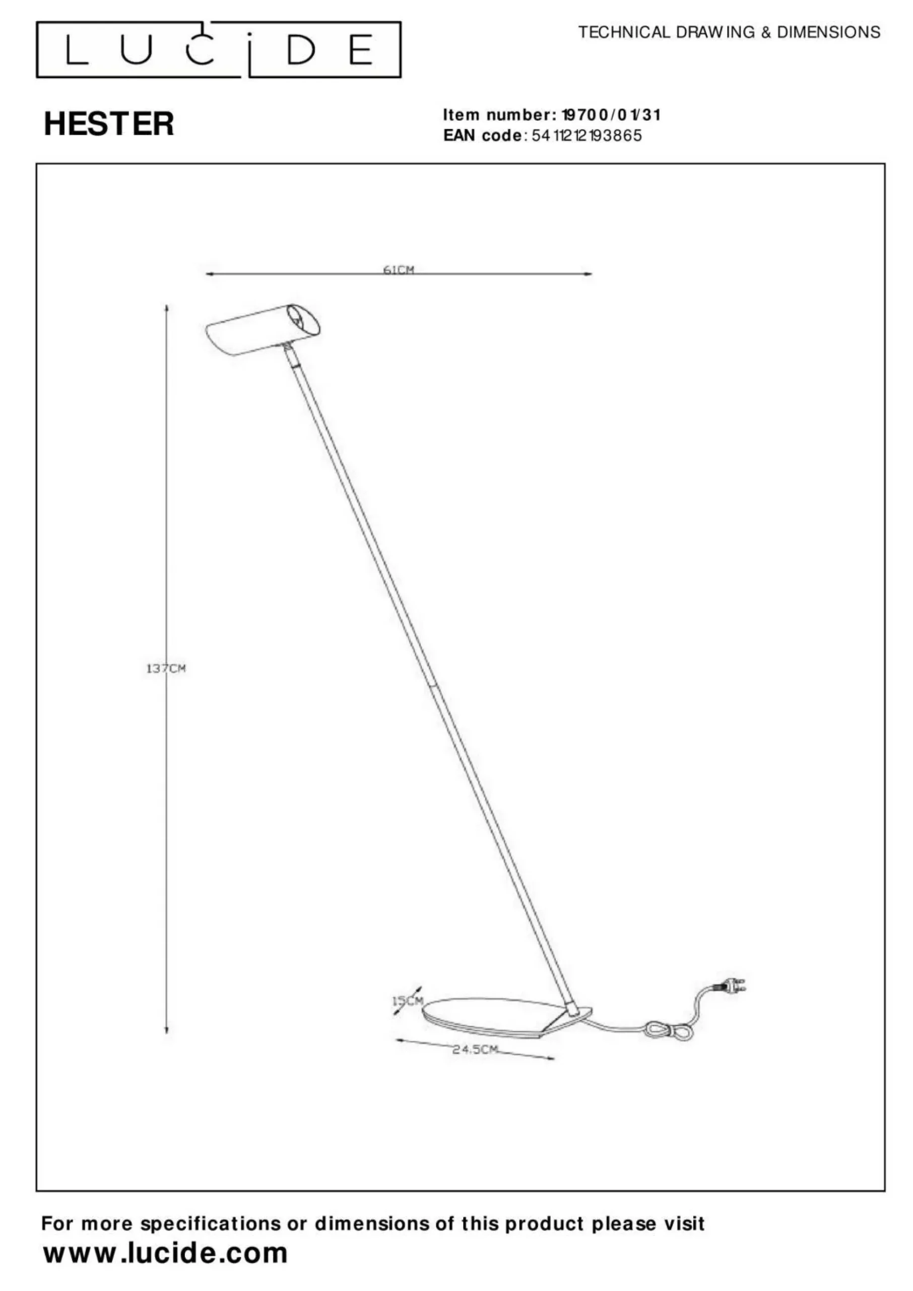 Auch in Ihrer Einrichtung gibt diese Stehlampe eine hervorragende Figur ab. Durch das stilvolle Aussehen harmoniert das Modell HESTER mit nahezu jeder Einrichtung und ist ein Highlight in Ihren Zimmern. In dieser Stehleuchte kommen sämtliche Qualitäten und Besonderheiten der Marke LUCiDE zusammen. Das Modell HESTER besitzt ein Längenmaß von 15 Zentimetern, ein Breitenmaß von insgesamt 30 Zentimetern sowie eine Höhe von 137 Zentimetern. Es weiß mit der Qualität des verwendeten Metalls zu überzeugen und vervollständigt Ihr persönliches Wohlfühlkonzept dank des modernen Designs. Die Leuchte ist für die Aufnahme von Leuchtmitteln mit GU10-Sockel geeignet. Das Modell HESTER sorgt für eine tolle Optik und verleiht jedem Zimmer mehr Atmosphäre. Es fügt sich wirkungsvoll in jeden bisherigen Wohnstil ein und kann nicht nur beleuchten, sondern auch ein herrliches Deko-Element sein. Gestalten Sie Ihre vier Wände mit dieser Stehlampe noch gemütlicher.