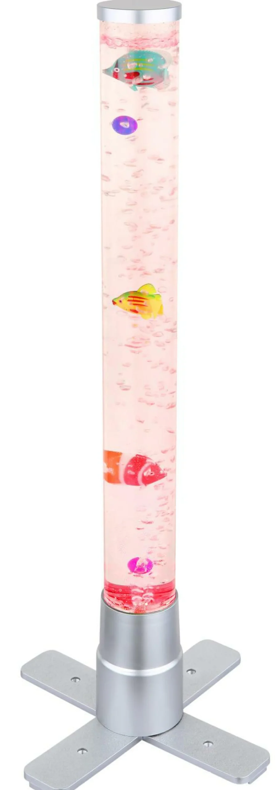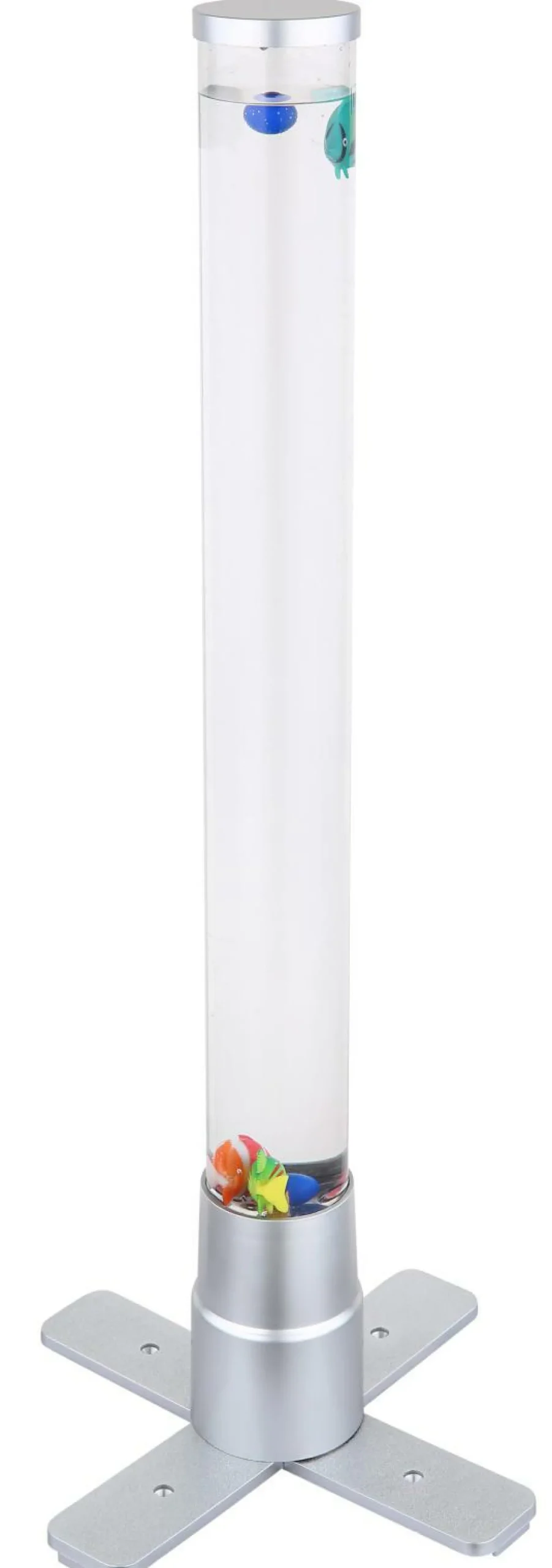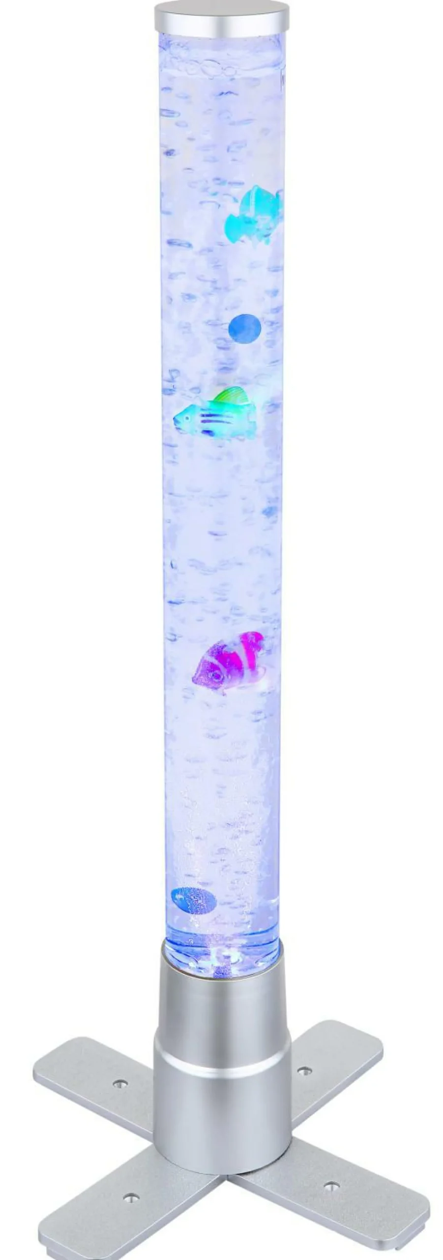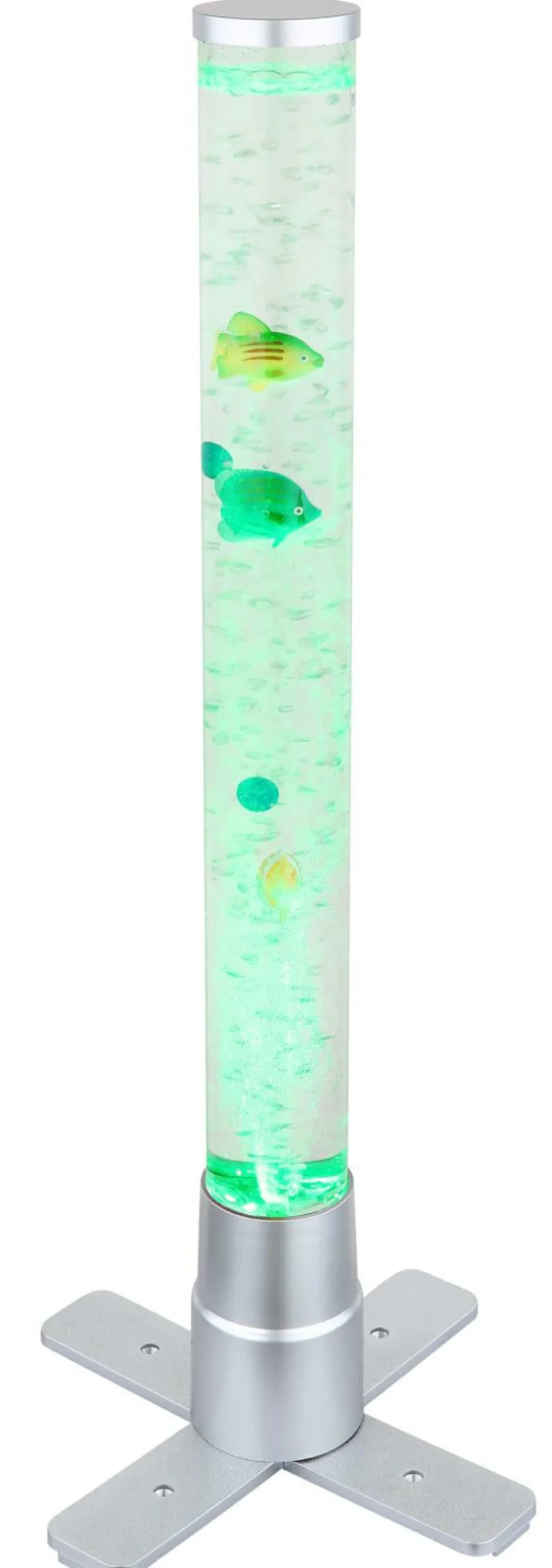 · Diese tolle Stehleuchte der Serie Mendoza begeistert durch Ihr einzigartiges Design. Aus einem Standbein ragt ein zylinderförmiges Gefäß mit einer Höhe von 61cm inklusive Dekorationsfische welche durch aufsteigende Luftblasen sich auf und ab bewegen. Durch ein RGB LED Leuchtmittel im Standfuß scheint das Wasser in unterschiedlichen Farben und sorgt für einen tollen Effekt.