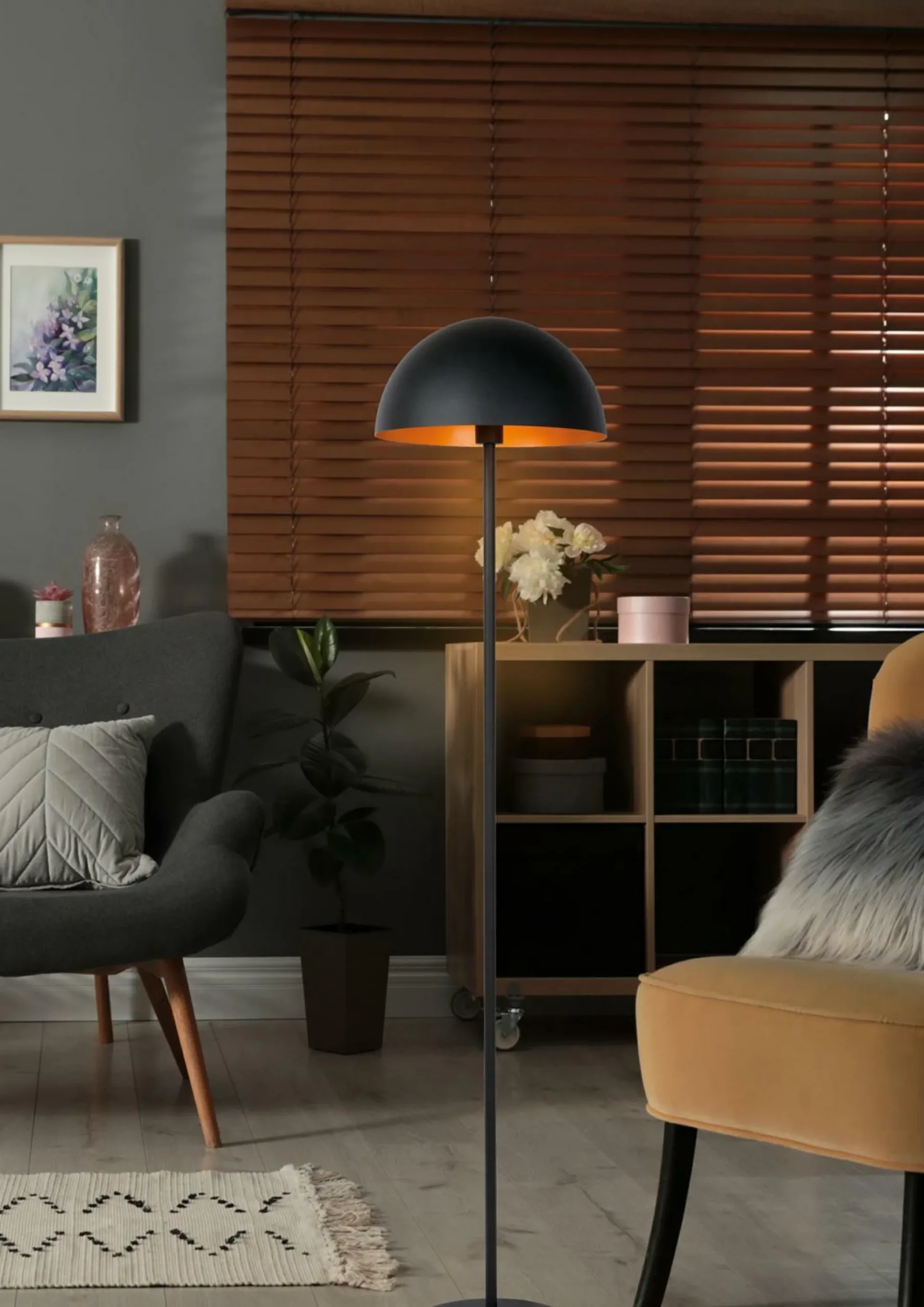 · Zwei Top-Elemente für eine gelungene Stehleuchte in Ihrem Wohnzimmer? Das sind die Retro-Vibes und das moderne Aussehen von Siemon. Diese Stehleuchte ist aus hochwertigem Stahl gefertigt und hat eine Höhe von 160 Zentimetern. Durch sein Design wirkt Siemon niedlich und modern zugleich. In der Mitte des halbrunden Lampenschirms befindet sich die Lichtquelle. Das Licht spiegelt sich mühelos an den Wänden des Schirms. Das macht die Stehlampe zu einer angenehmen Erscheinung in Ihrem Interieur. Schalten Sie Siemon mit dem Schalter im Kabel ein und aus.