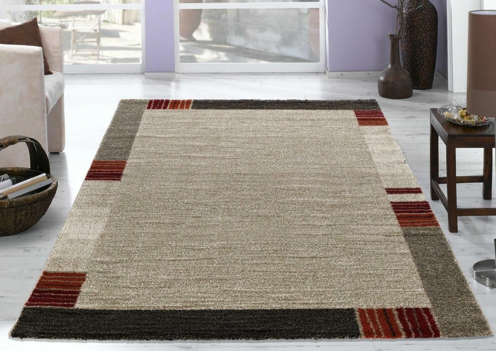 · geschmackvolle Eleganz und behagliche Gemütlichkeit vereinen sich in diesem Teppich! Der traditionelle Schnitt aus weitläufig-ebenmäßigem Innenfeld und umrandender, gemusterter Bordüre erhält seinen besonderen Pfiff durch die bedacht gesetzten, farblich Florhöhe: 20 mm