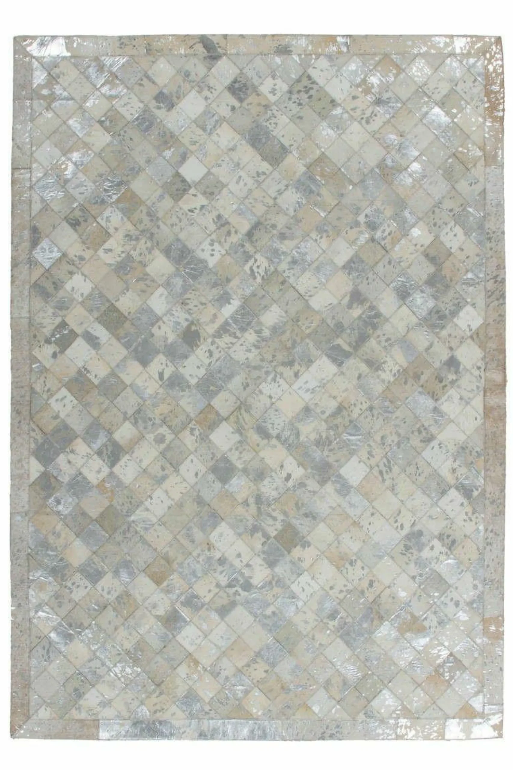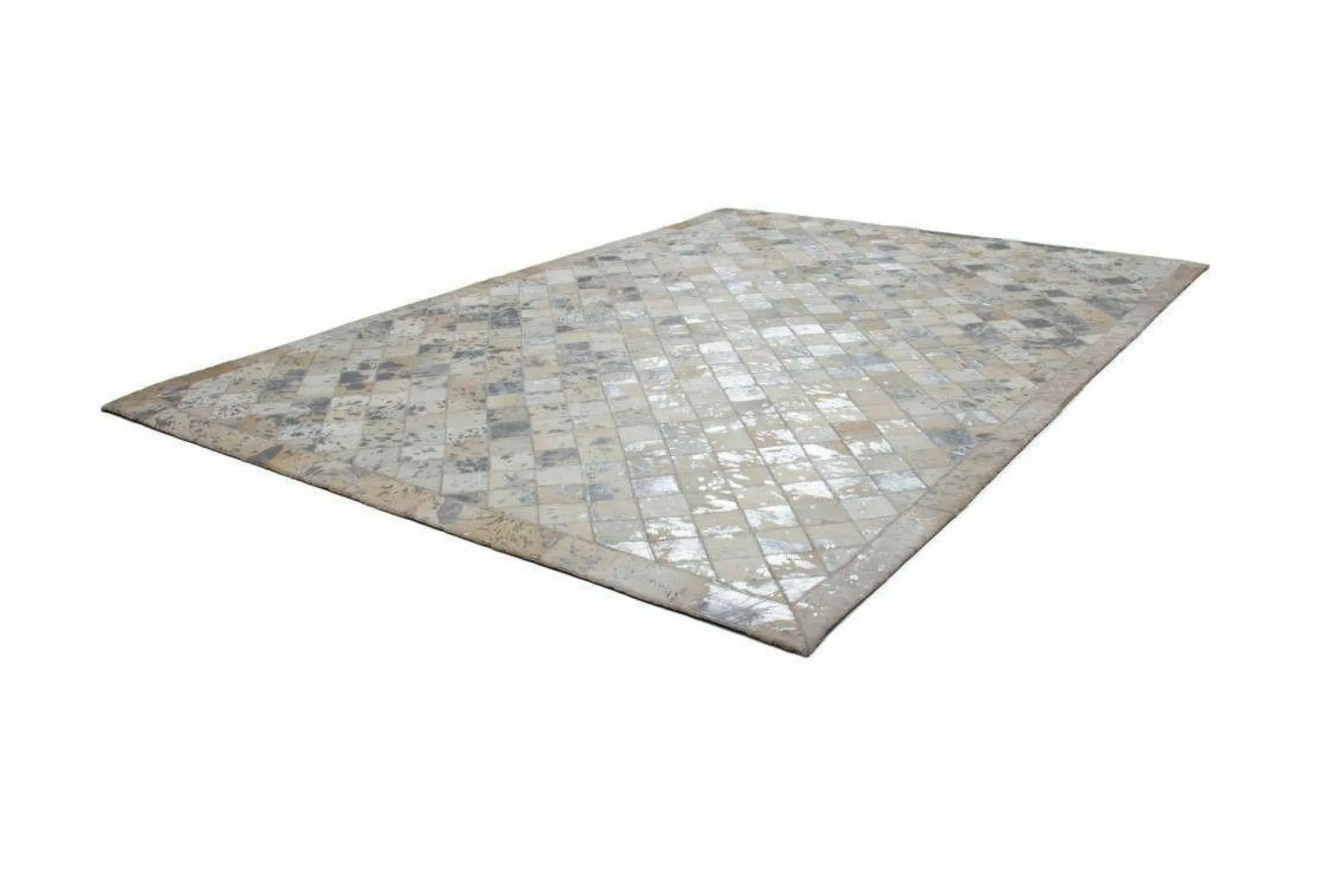 · Dieser hochwertige Patchwork-Teppich aus 100% Leder gibt Ihrer Einrichtung einen modernen und individuellen Touch. Von Hand gefertigt ist jeder einzelne Lederteppich ein Unikat. Die Verwendung von edlen Naturmaterialien und die hochwertige Verarbeitung sorgen für ein dynamisches Aussehen, das seinesgleichen sucht. Setzen Sie ein Statement mit diesem Lederteppich und machen Sie ihn zum Blickfang in Ihren vier Wänden! Das stilvolle Karo-Design, von einem klaren Rahmen umfasst, wirkt durch die extravagante Farbgebung besonders luxuriös. Das Naturmaterial behält auch bei starker Beanspruchung seine Form und Haptik bei und ist daher sehr langlebig. Bei Naturprodukten kann es zu natürlichen Unregelmäßigkeiten in Form, Farbe und Muster von bis zu 30 % kommen. Das natürliche Fell kann nach einiger Zeit und bei hoher Beanspruchung gegebenenfalls an Haaren verlieren. Ebenso könnte sich die Silberfolie unter Umständen ablösen. Dies ist dem Naturprodukt und der Beschaffenheit des Fells geschuldet und kein Produktionsfehler.