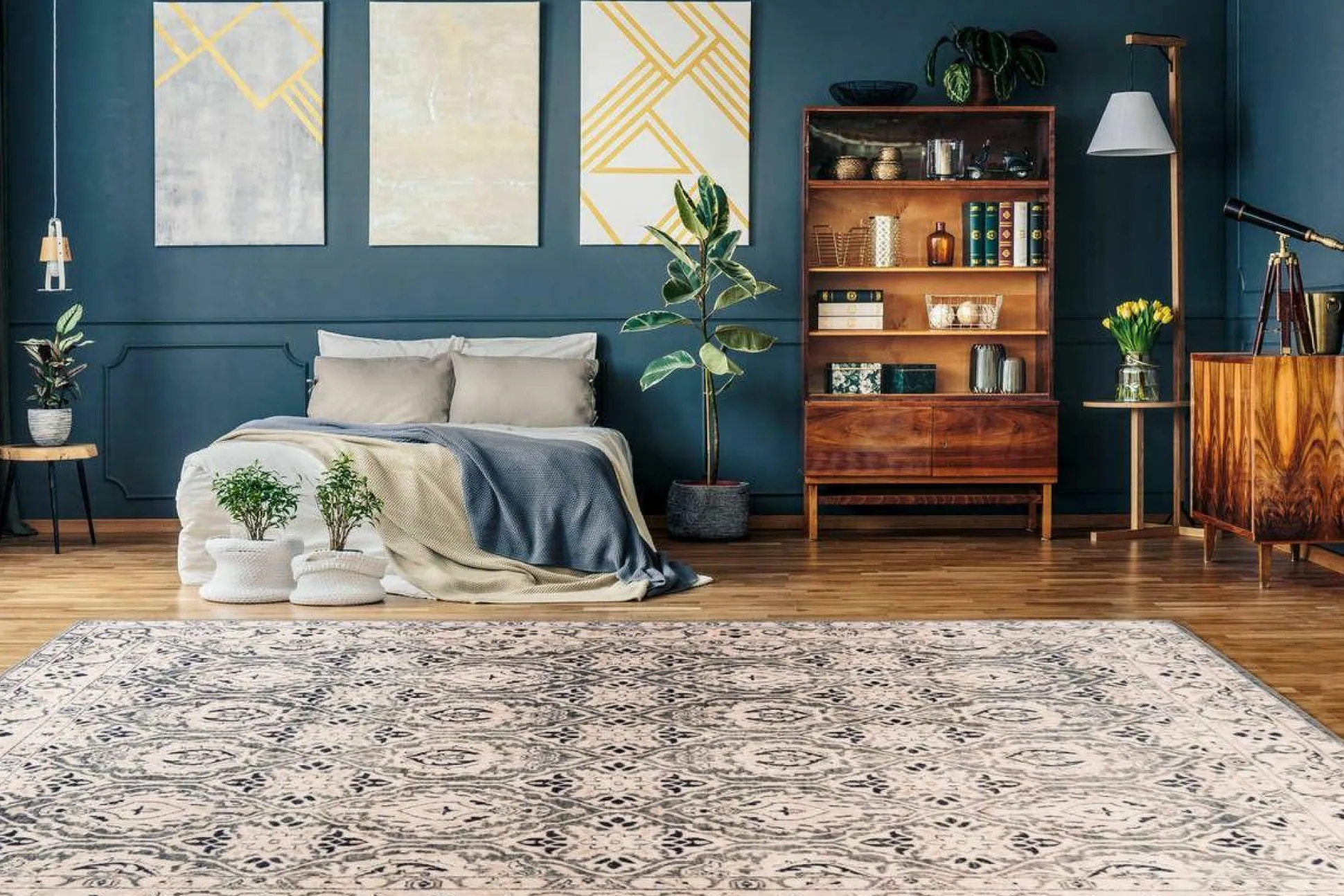Dieser Teppich wird schnell zum Favoriten in den eigenen vier Wänden. Der in einer rechteckigen Form gehaltene Teppich eignet sich optimal für Ihr Esszimmer, Ihr Wohnzimmer, Ihr Schlafzimmer oder Ihren Flur. Das Modell SAPHIRA macht sich perfekt als Deko-Accessoire für Ihre Einrichtung, ist ein echter Hingucker und kann ohne Weiteres in den Raum Ihrer Wahl integriert werden. Es ergänzt Ihr persönliches Konzept durch das orientalische Design und weist eine angenehme Florhöhe von 6 mm auf. Der Teppich integriert sich gelungen in Ihren Einrichtungsstil und schafft eine schöne, gemütliche Atmosphäre. Dieser Teppich passt sich Ihrem Zuhause an.