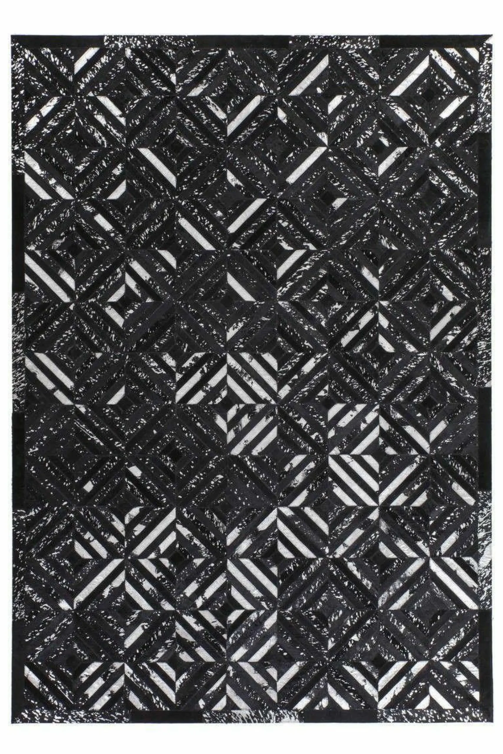 · Der wunderschöne Lederteppich mit eingearbeiteten Applikationen aus metallischer Folie rundet jeden edlen Einrichtungsstil gekonnt ab. Der hochwertige Edel-Teppich aus 100 % Leder überträgt einen individuellen Touch auf seine Umgebung und erzeugt ein ganz besonderes Flair. Von Hand gefertigt ist jeder einzelne Lederteppich ein Unikat. Die Verwendung von edlen Naturmaterialien und die hochwertige Verarbeitung sorgen für ein dynamisches Aussehen und machen jeden Teppich einzigartig, denn bei Naturprodukten kann es in Form, Farbe und Muster zu Abweichungen von bis zu 30 % kommen. Das natürliche Fell kann nach einiger Zeit und bei hoher Beanspruchung gegebenenfalls an Haaren verlieren. Ebenso könnte sich die Metallicfolie unter Umständen ablösen. Dies ist dem Naturprodukt und der Beschaffenheit des Fells geschuldet und kein Produktionsfehler. Setzen Sie ein Statement mit diesem Lederteppich und machen Sie ihn mit seinen kontrastreichen Farben zum Blickfang in Ihren vier Wänden. Er eignet sich für alle Räumlichkeiten – ob Wohnzimmer, Schlafzimmer, Diele oder Esszimmer. Das moderne filigrane Rautenmuster verleiht dem Produkt eine ganz besondere Note und kommt in Kombination mit Note und Möbeln gut zur Geltung. Naturfaser-Teppiche fangen Fusselwolken ein und sind daher besonders gut für Allergiker geeignet, da sie gleich abgesaugt werden können. Der extra bequeme Lederteppich ist ein Alleskönner, der sowohl durch seine Optik als auch durch seine Haptik überzeugt. Das strapazierfähige Material macht die schwere Qualität des Teppichs aus, ist äußerst langlebig und pflegeleicht. Für einen spürbaren Wohlfühl-Effekt sorgt dabei die wärmeisolierende Eigenschaft des Leders. Verleihen Sie Ihren Räumen das gewisse Etwas und schaffen Sie Ihre eigene Relax-Insel in verschiedenen Nuancen. Selbst die kleinste Wohnung lässt sich mit diesem wundervollen Naturteppich persönlich einrichten, denn er ist in verschiedenen Größen erhältlich.