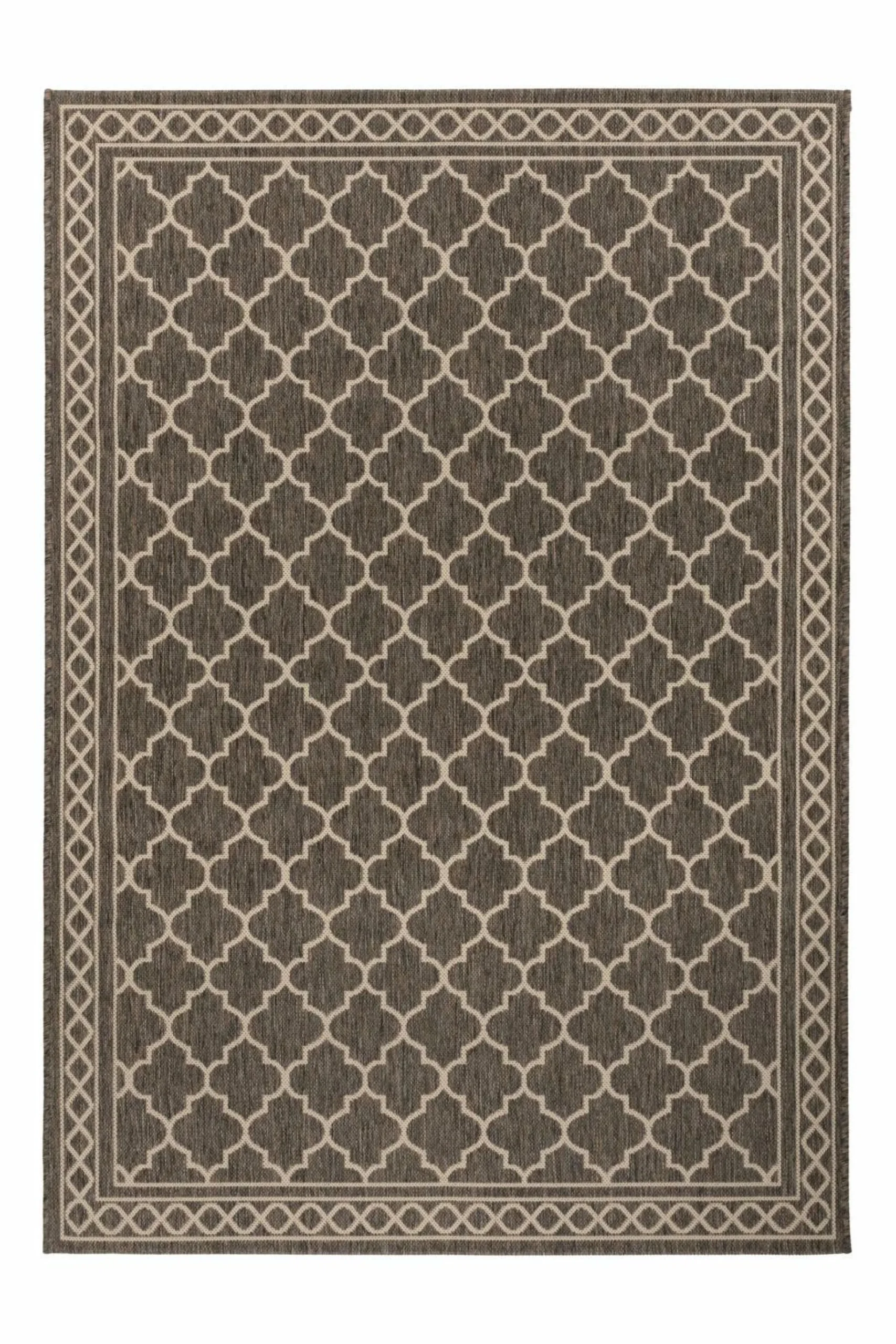 · Dieser robuste Teppich für den Außenbereich setzt mediterrane Akzente in jeden Wohnbereich. Der Flachgewebeteppich mit dezenter Farbgebung schafft durch das moderne Design ein gemütliches Ambiente in jedem Außenbereich. Dank seiner feuchtigkeitsbeständigen Kunstfaser aus Polypropylen ist er wasserabweisend und wetterfest. Außenbereiche können mit ihm als Läufer oder Auslegteppich das ganze Jahr über verschönert werden. Werten Sie die Möbel auf Ihrem Balkon auf, indem Sie den Teppich darunter platzieren oder gestalten Sie ausgewählte Bereiche Ihrer Terrasse wohnlich. Kombiniert mit modernen Loungemöbeln oder Sitzelementen und Beistelltischen schafft der Teppich ein gemütliches Ambiente, welches durch Kerzen und Lichterketten ergänzt werden kann. Ob auf Balkon, Terrasse oder Hof, der Outdoor Teppich ist überall gern gesehen und kann selbstverständlich ebenso im Wohnraum ausgelegt werden. Lassen Sie die Sommerabende mit diesem Teppich in Ihrem Außenbereich ausklingen!