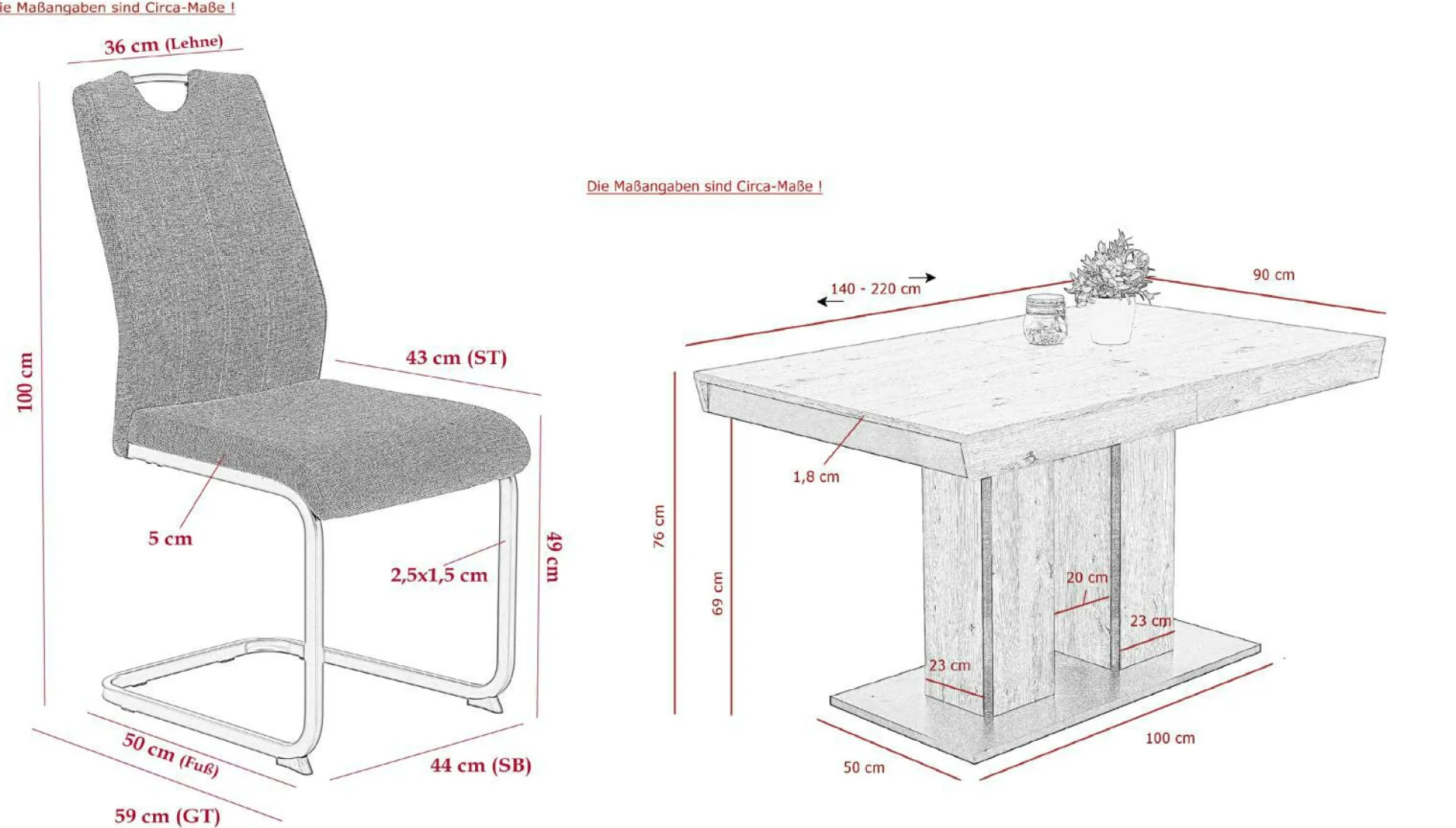· Ausziehbar auf ca. 220cm