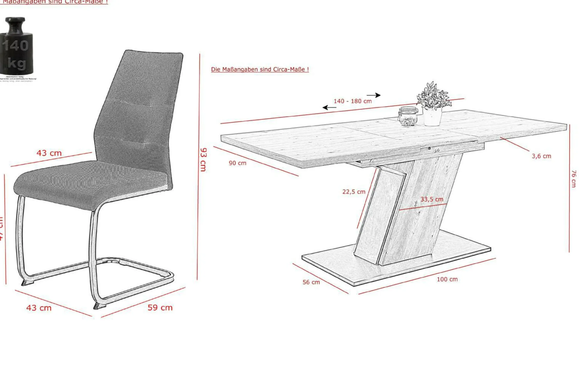 · BHT ca. 140(180)x76x90cm