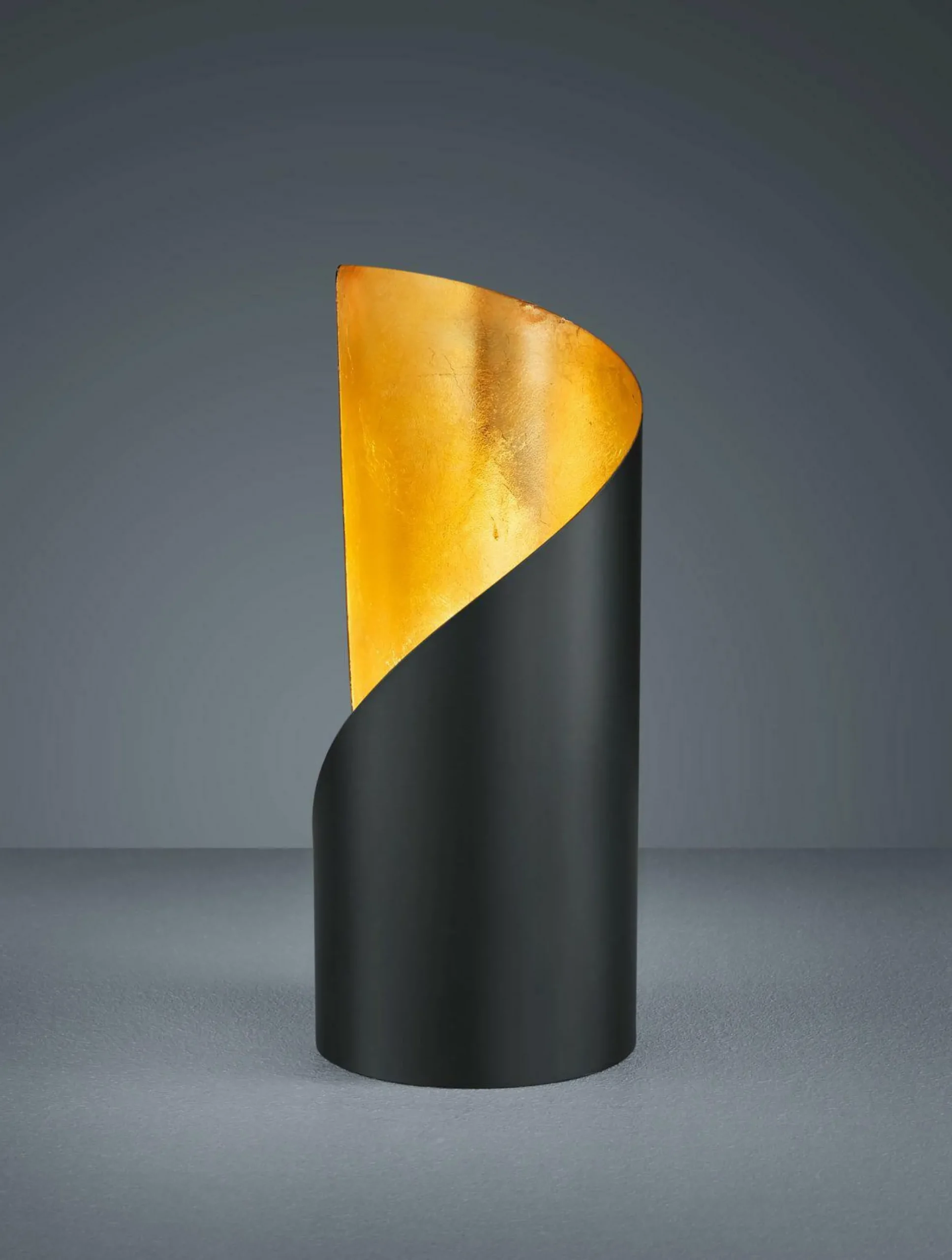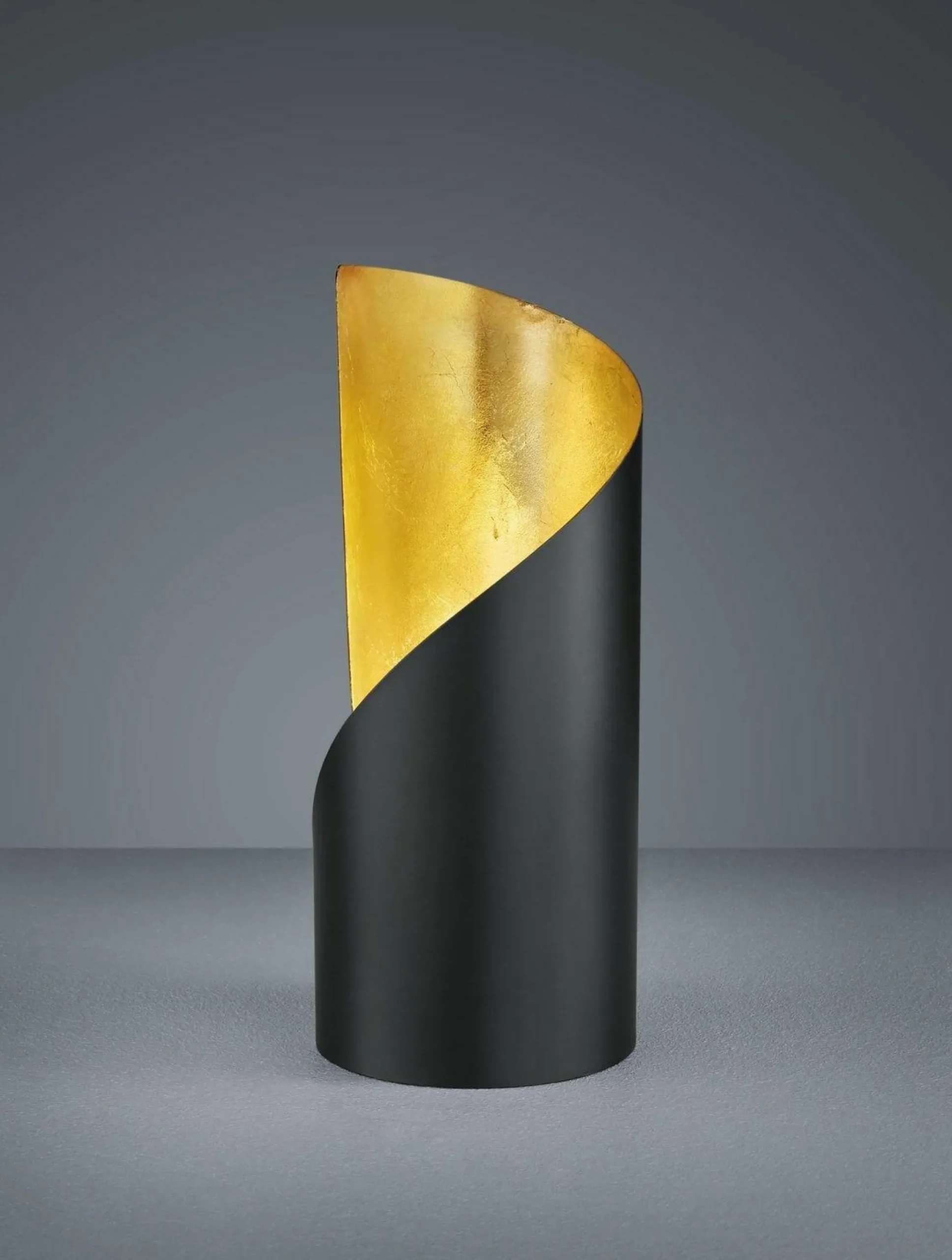 Extravagant in Form und Farbe – diese Tischleuchte setzt tolle Akzente auf Ihrem Tisch. Dabei besitzt die Leuchte einen Durchmesser von 10 cm und ist 24 cm hoch. Von außen ist die Lampe schwarz-matt und innen ist sie in Gold foliert – durch diesen Farbkontrast entsteht ein außergewöhnlich schöner Look in Ihrem Wohnraum. Durch die moderne Form und Farbgestaltung ist die Tischleuchte in verschiedenste Einrichtungsstile integrierbar und stellt überall ein tolles Highlight dar.