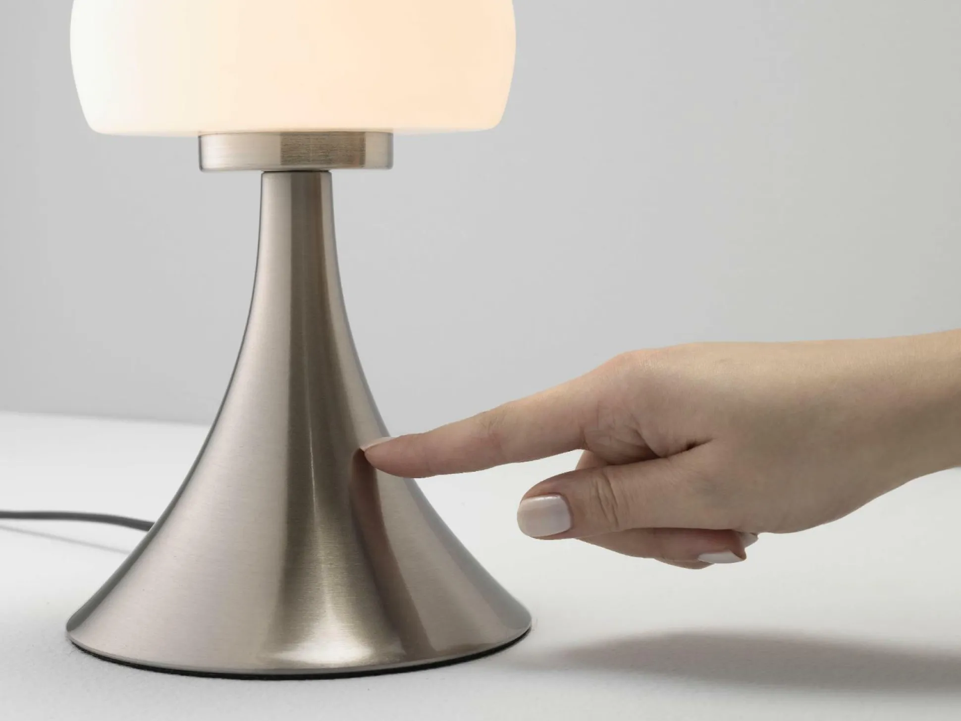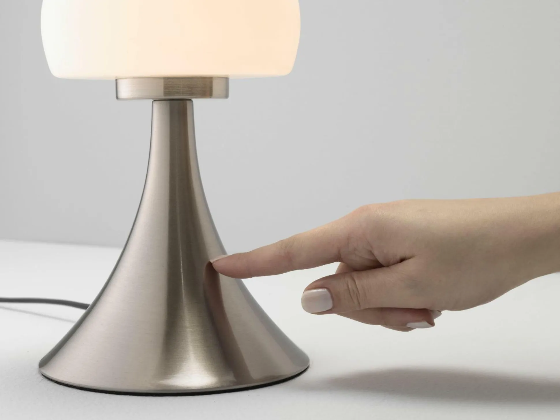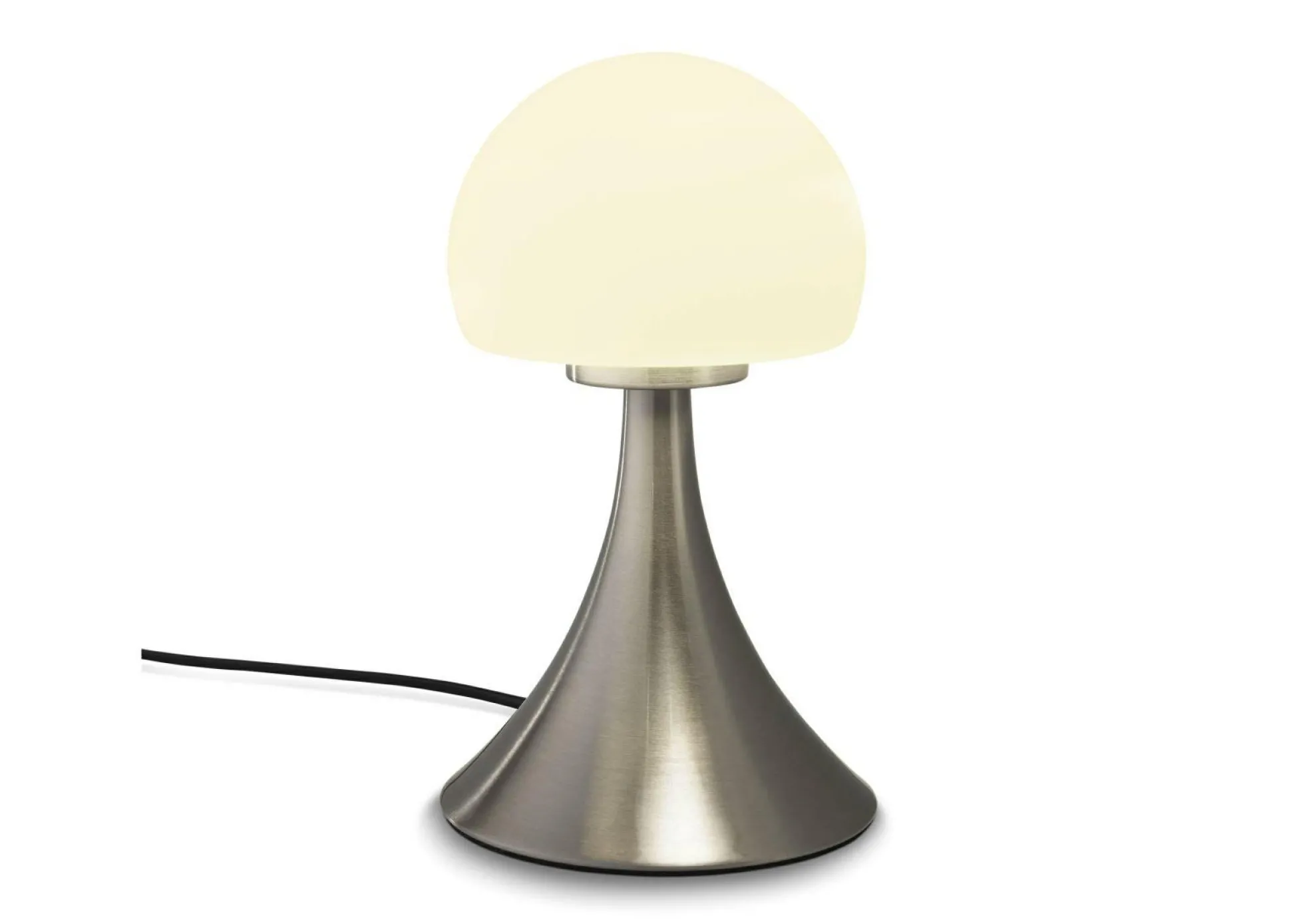 Die Tischleuchte Pilz von casa Nova sorgt für gemütliche Lichtakzente auf Tischen und Kommoden. Die kleine Leuchte besteht aus Nickel und weißem Glas und erinnert durch die Form an einen Pilz. Die Leuchte verfügt über einen 3-Wege Touch Dimmer, so können Sie ganz einfach über die Helligkeit im entsprechenden Raum bestimmen. Ein schwarzes Kabel rundet die schicke Leuchte ab, die in viele Einrichtungsstile passt.