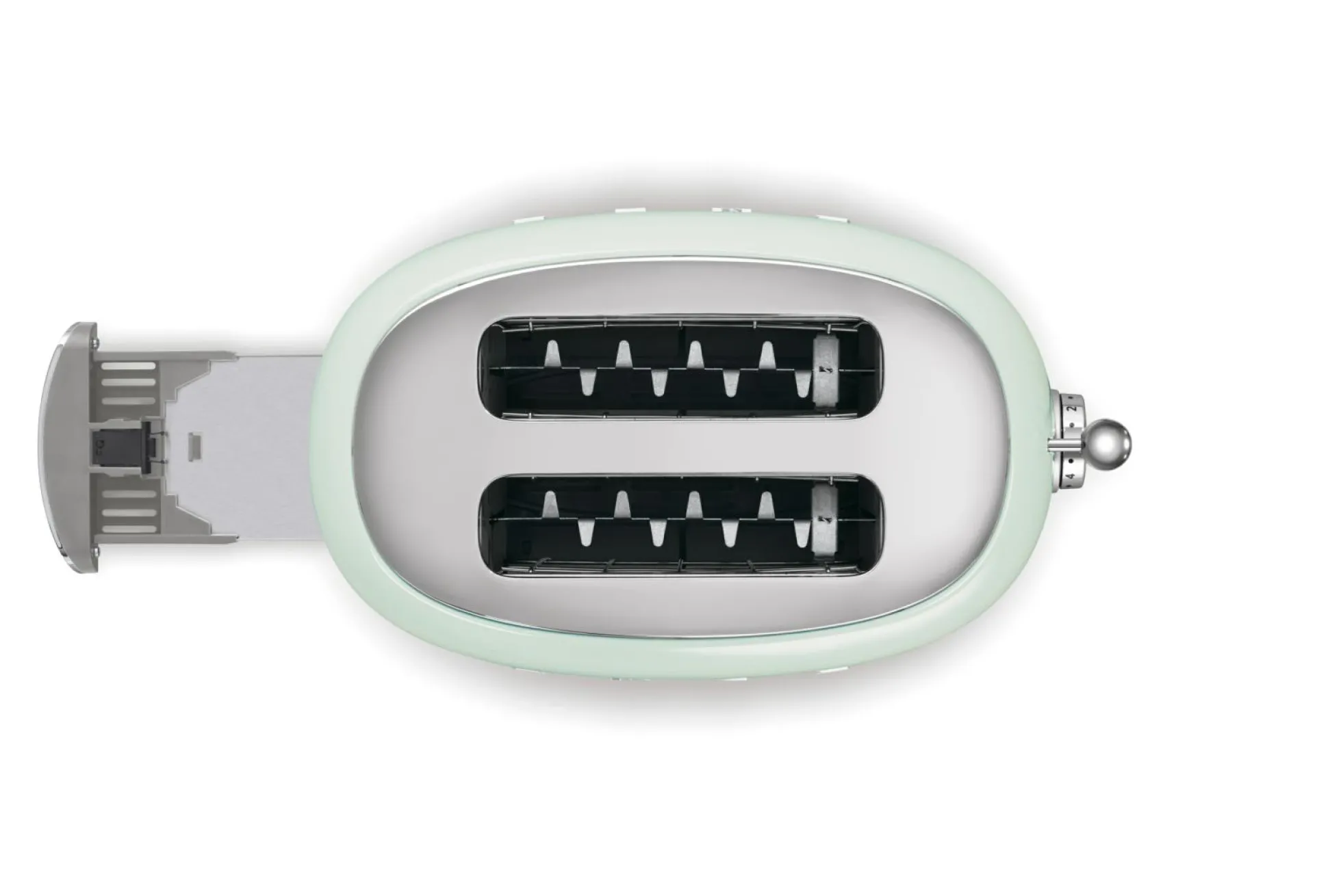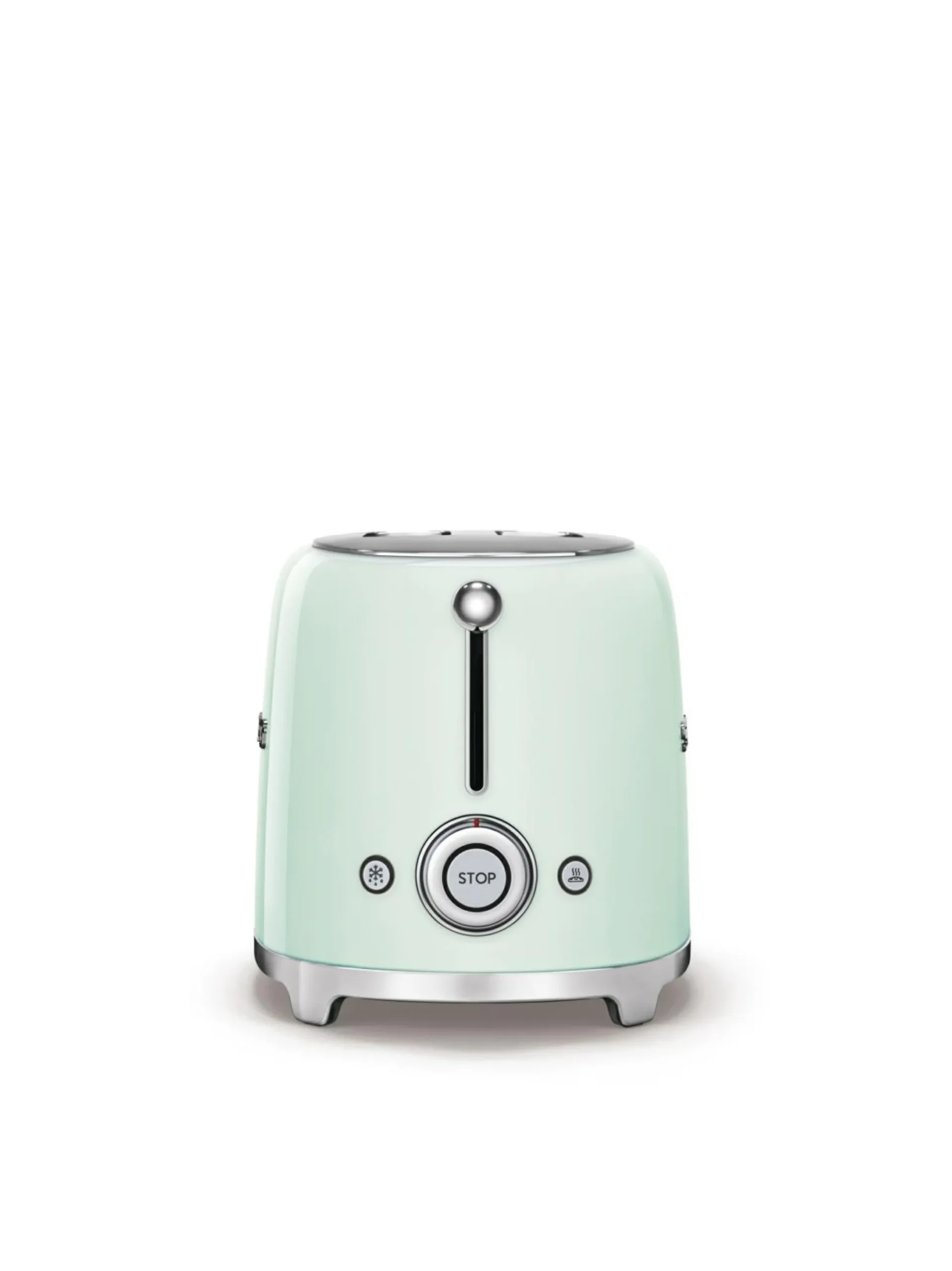 Schickes Retro-Design und nützliche Funktionen – der Kompakt-Toaster von SMEG steht für beste Qualität und einfache Handhabung. Insgesamt besteht der Toaster aus lackiertem Edelstahl in Pastellgrün und verfügt über breite Toastschlitze mit Platz für mehrere Toastscheiben. Mit sechs Röstgradstufen ausgestattet, können Sie zwischen drei Automatikprogrammen wählen. Zudem werden die Toastscheiben bei diesem Gerät automatisch zentriert und nach Röstende ausgeworfen. Besonders vorteilhaft ist die herausnehmbare Krümelschublade, durch die Sie das Gerät vernünftig säubern können. Damit der Toaster auf der gewünschten Stelle bleibt, ist er mit rutschfesten Stellfüßen ausgestattet. Neben den vielen Vorteilen stellt der Kompakt-Toaster durch den 50er-Jahre-Style ein super schickes Dekorationselement in Ihrer Küche dar.