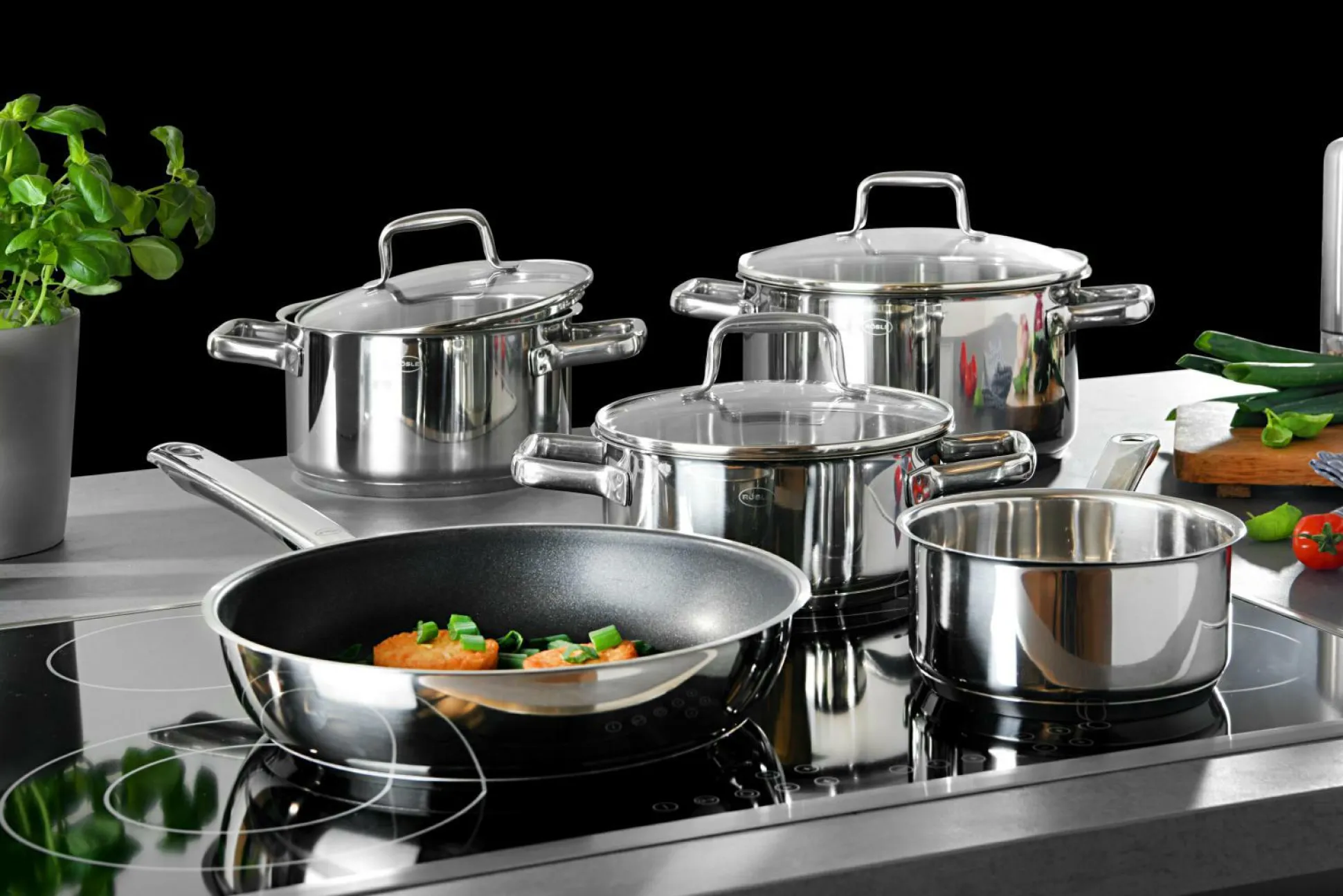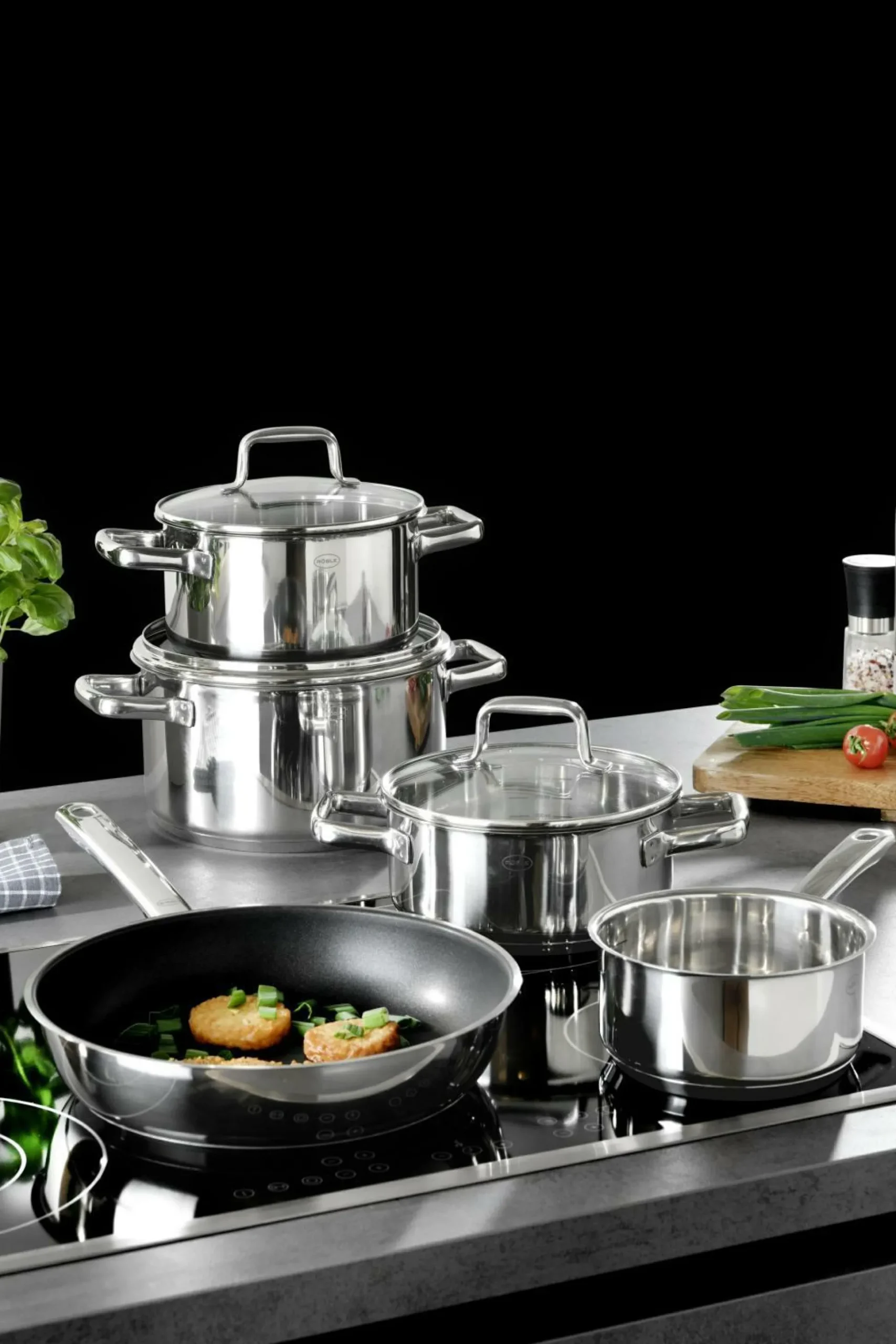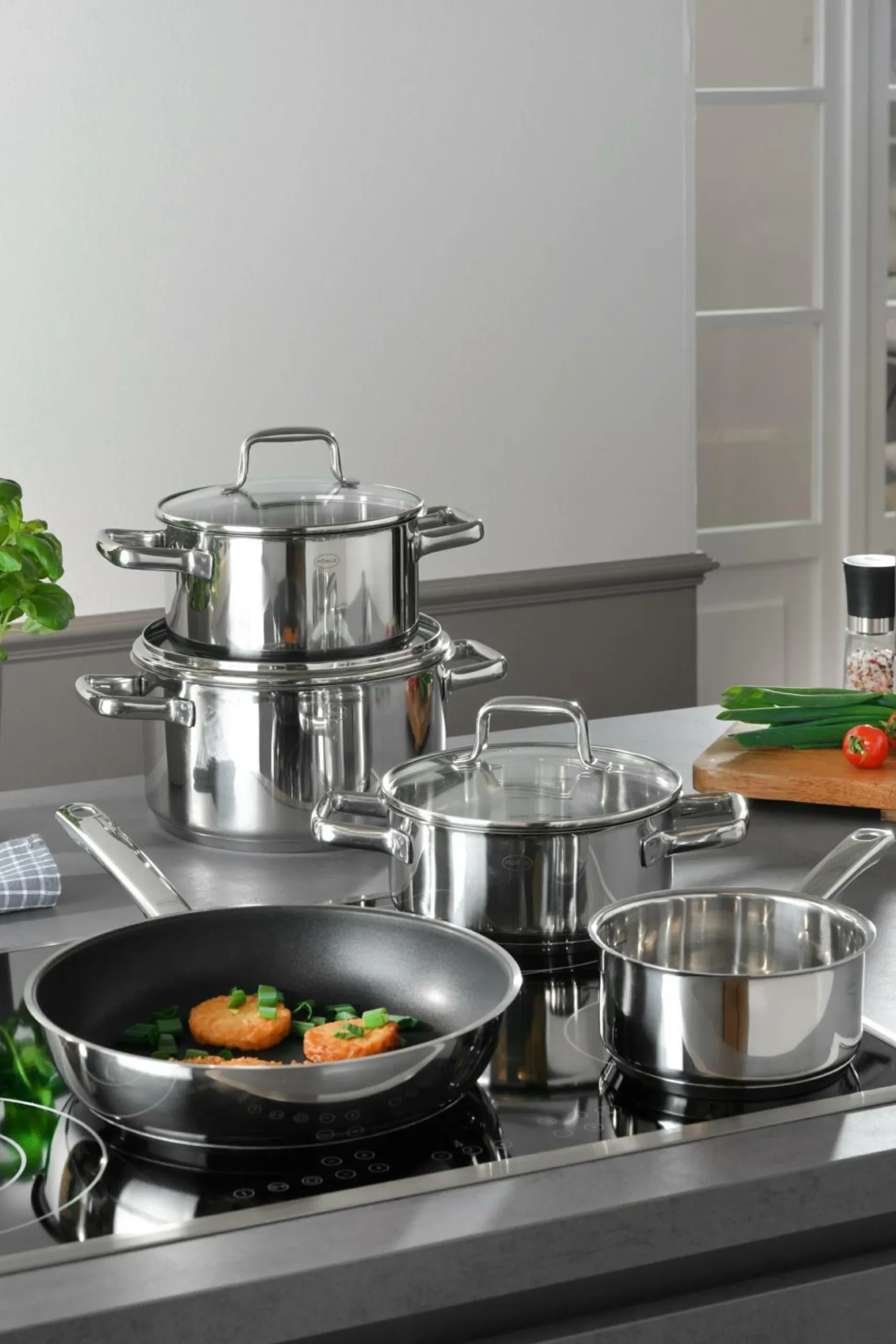 · bestehend aus: Stielkasserolle 16 cm Kochtopf 20/24 cm mit Deckel Bratentopf 20 cm mit Deckel Bratpfanne 28 cm geeignet für alle Herdarten: Elektro, Keramik, Gas, Induktion und Backofen
