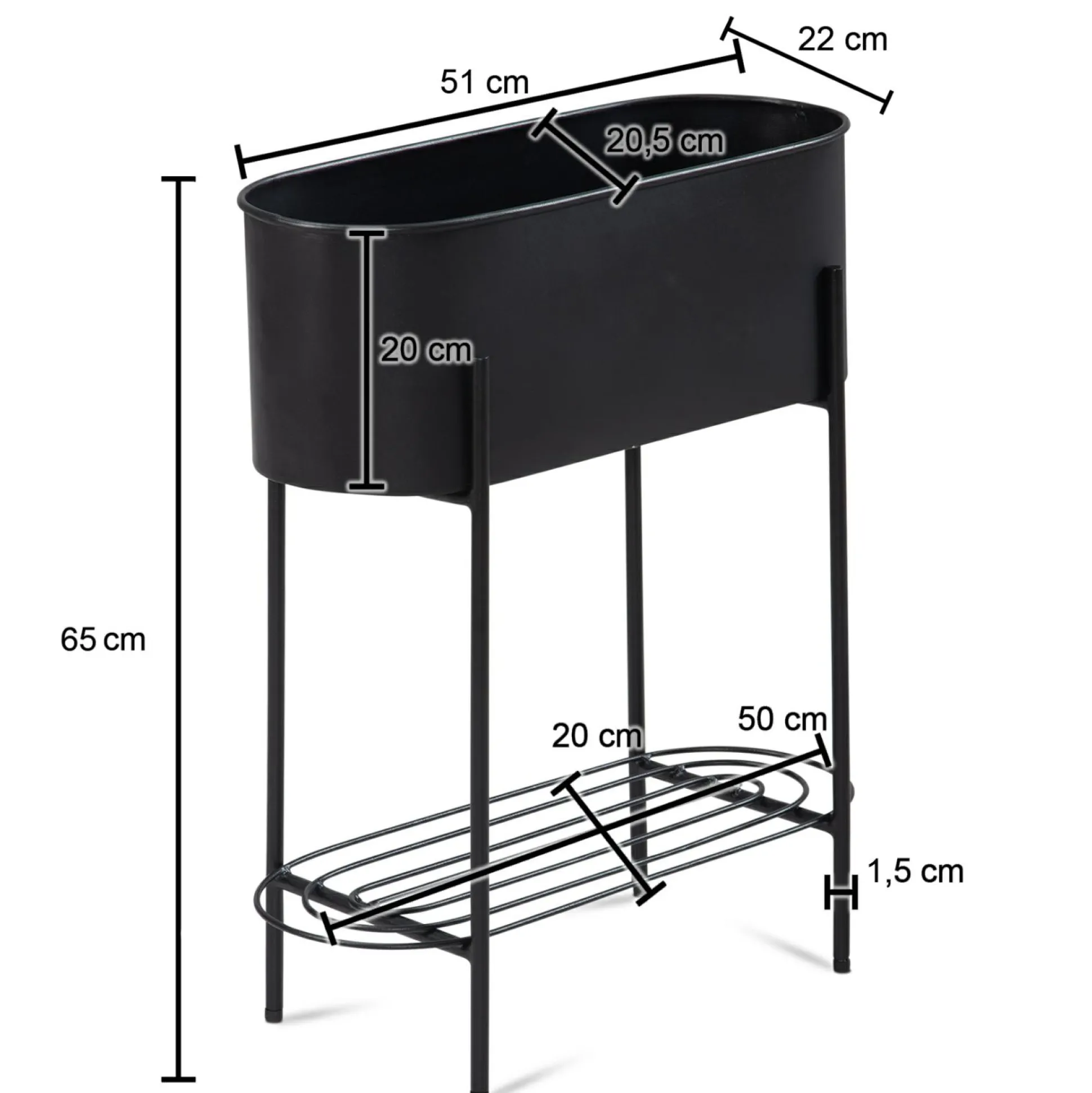 · Abmessungen – Innenabmessungen Kasten (BxHxT): 49,5 x 20 x 20,5 cm, Ablagefläche (BxT): 50 x 20 cm.