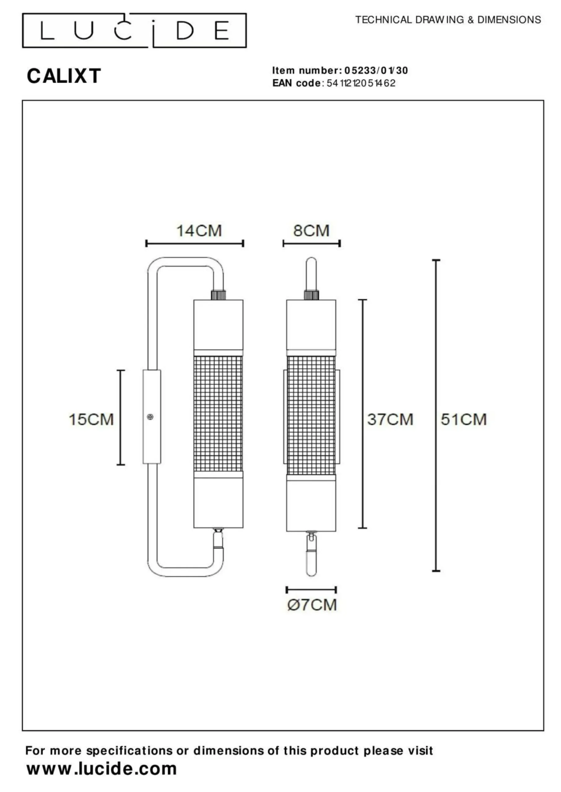 Mit dieser Wandlampe ergänzen Sie nicht nur Ihre Innenausstattung, sondern sorgen auch für eine angenehme Beleuchtung. Die Wandleuchte überzeugt durch ihr klares Aussehen, welches sich jedem Ambiente wirkungsvoll anpasst. Sämtliche Qualitäten und Highlights, die die Marke LUCiDE ausmachen, kommen in dieser Lampe zusammen. Die Möglichkeit zum Dimmen sorgt für flexible Lichtverhältnisse und eine gemütliche Wohlfühlstimmung. Die Wandlampe hat ein Breitenmaß von 8 Zentimetern, eine Länge von insgesamt 14 Zentimetern sowie eine Höhe von 51 Zentimetern. Sie ist an die Aufnahme von Leuchtmitteln mit einem E27-Sockel angepasst. Die Wandlampe aus Stahl integriert sich perfekt in Ihren Einrichtungsstil und kreiert eine angenehme, wohnliche Atmosphäre. Sie ist eine sichere Möglichkeit, Ihre Zimmer zum Strahlen zu bringen, und deshalb eine ausgezeichnete Wahl. Sie werden nicht auf diese Wandleuchte verzichten wollen.