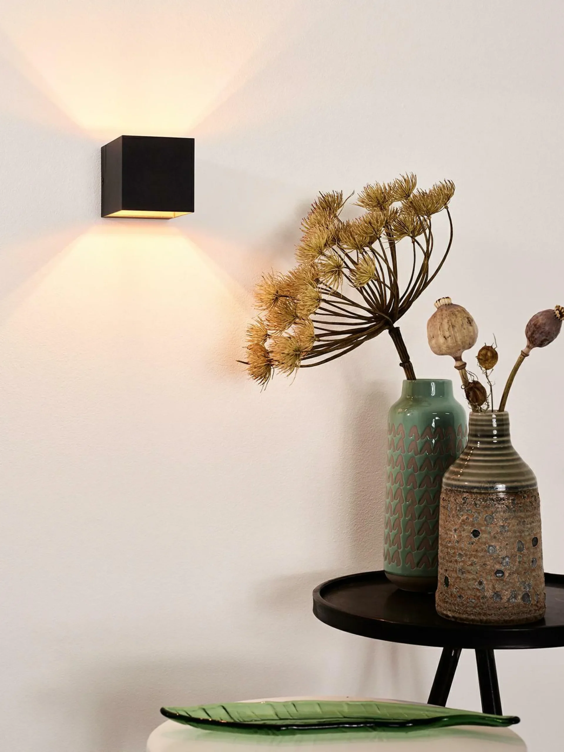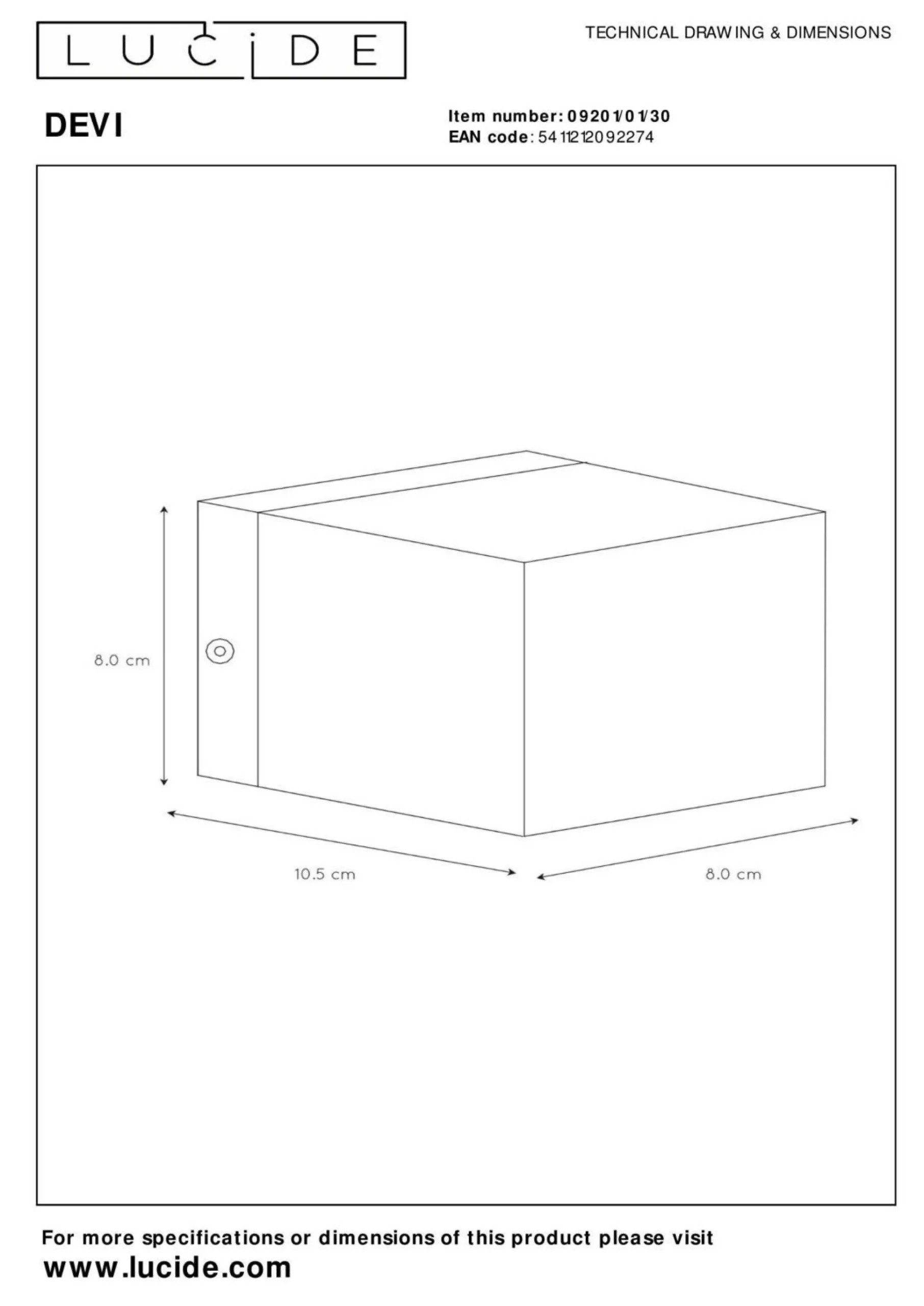 · Die Wandlampe Lucide Devi ist eine wunderschön verarbeitete Aluminiumarmatur. Diese von vielen Architekten verwendeten Wandlampe ist am schönsten an einer schönen Putzmauer oder an einer robüst gemauerten Wand. Diese Wandlampe hat nämlich ein hervorragendes sanduhrförmiges Lichtbündel. Mit einer Abmessung der Hinterplatte von 10,5 cm x 8 cm ist die Devi einfach über den Unterputz-Abzweigdose zu platzieren. Die Devi ist mit einer G9 Hochvoltfassung versehen, wird jedoch ohne Lichtquelle geliefert. Sie haben die Wahl aus einem traditionellen G9 Halogenspot (max 42W) oder einer energieeffizienten (nicht) abblendbaren G9 LED-Lichtquelle. LED oder traditionell Halogen, da diese Devi keinen Transformator hat, ist die Armatur besonders einfach abzubleden (mit einem basic Ein- oder Aufbaudimmer – nicht eingeschlossen). Die Devi ist in weißer-, schwarz mit innen in mattem Gold und Aluminiumfarbe erhältlich.