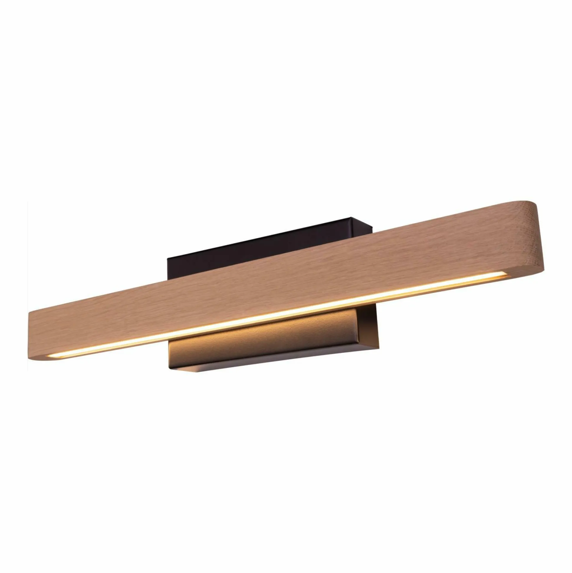 Mit der modernen Wandleuchte FORSTIER gestalten Sie Ihr Zuhause mit einer Lampe, die mit einem besonders Zeitlosen Design lange heraussticht. Das Holzelement wird aus schickem Eichenholz gefertigt, der Rahmen erscheint in einem schwarz lackiertem Metall. Diese Lampe lässt sich bequem mit einem Kippschalter bedienen.