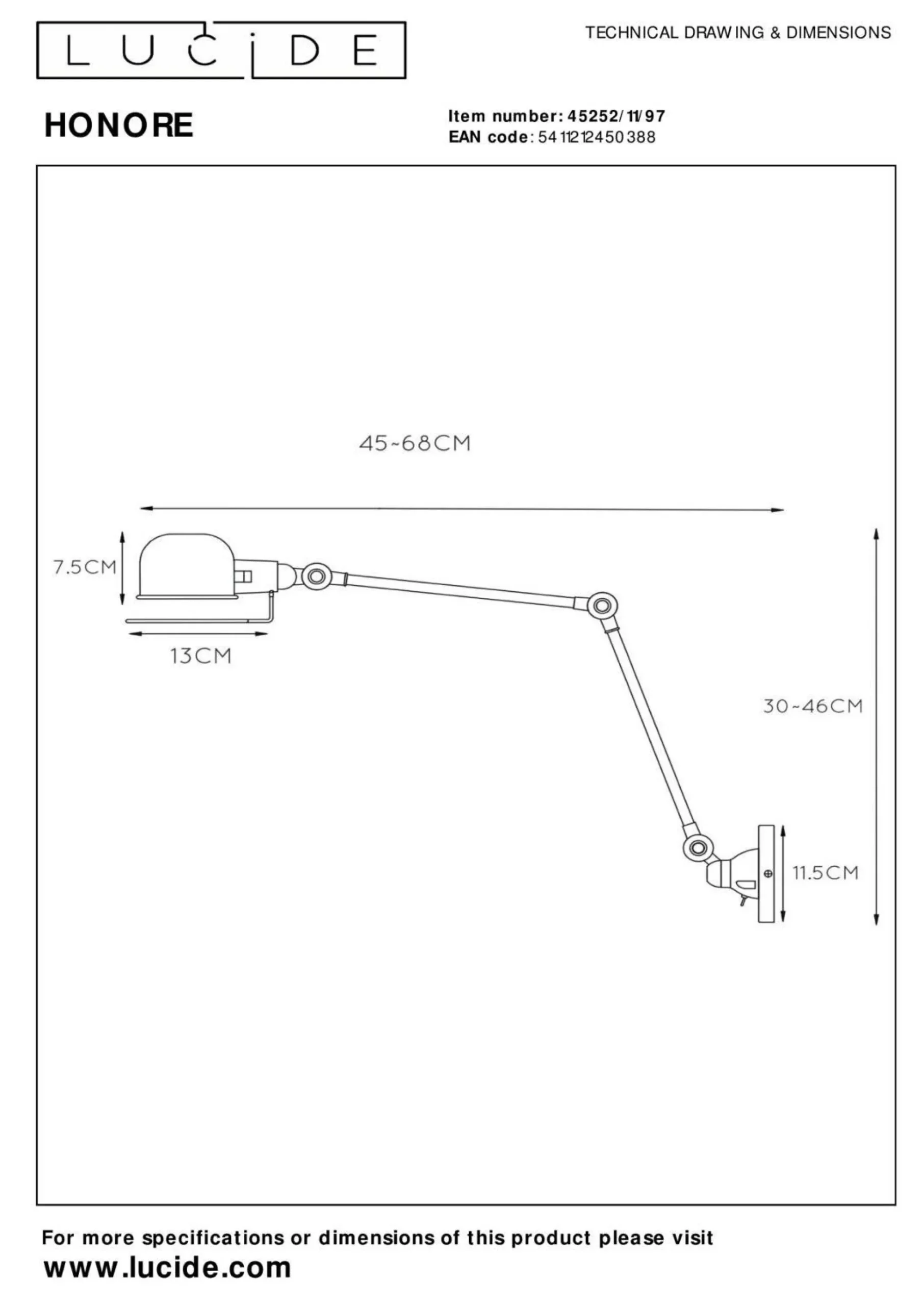 · Sind Sie auf der Suche nach einer attraktive Wandleuchte? Wir haben gute Nachrichten. Mit Honore ist die Suche beendet. Die Wandleuchte ist mit ihrer edlen Metall-Silhouette und flexiblem Arm ein echter Blickfang. Honore glänzt als Zusatzbeleuchtung mit einem industriellen Touch. Ihr Lieblingszimmer? Was halten Sie von Ihrem Flur, Wohnzimmer oder Schlafzimmer. Sie empfängt alle Gäste mit ihrem unvergleichlichen Flair. Mit Honore haben Sie die Umstellung auf energieeffiziente und dimmbare Beleuchtung schnell vollzogen. Der praktische Schalter am Beleuchtungselement vervollständigt das tolle Gesamtbild der Wandleuchte.