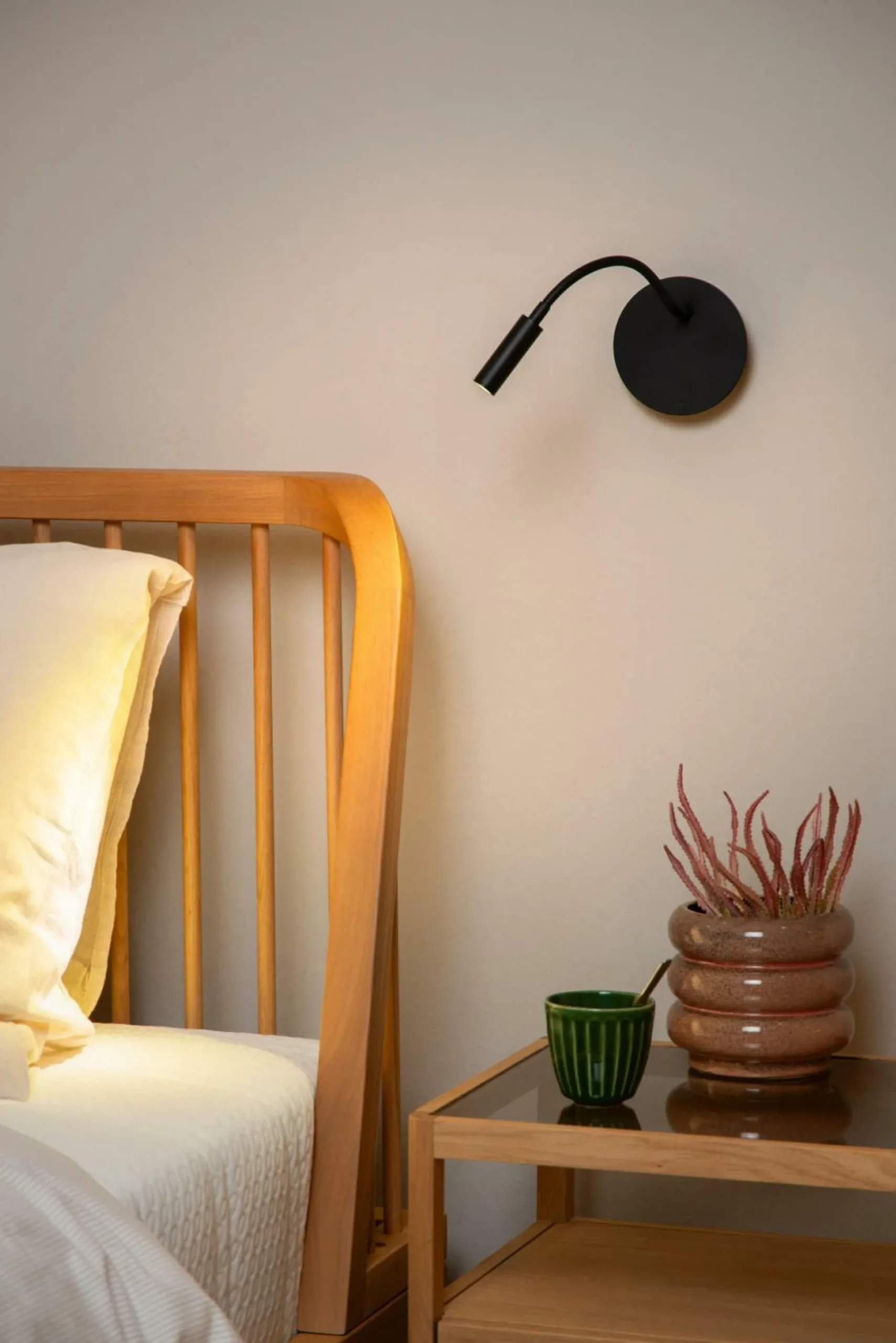 · Suchen Sie eine Bettlampe, aber Ihr Stromplan erlaubt keine? Mit einer wiederaufladbaren Leselampe wie Jolijn wird Ihr Schlafzimmer noch intimer und Sie benötigen kein einziges Kabel. Mit dem flexiblen Lesearm können Sie die Lampe ausrichten, wo immer Sie wollen: auf Ihr Buch oder einfach an die Decke für ein diffuses, gemütliches Licht. Jolijn lässt sich ganz einfach über USB aufladen und mit einem praktischen Magnethalterungssystem befestigen. Die integrierten LED-Birnen geben ein warmweißes Licht ab. Jolijn hat einen Durchmesser von 11 Zentimetern.