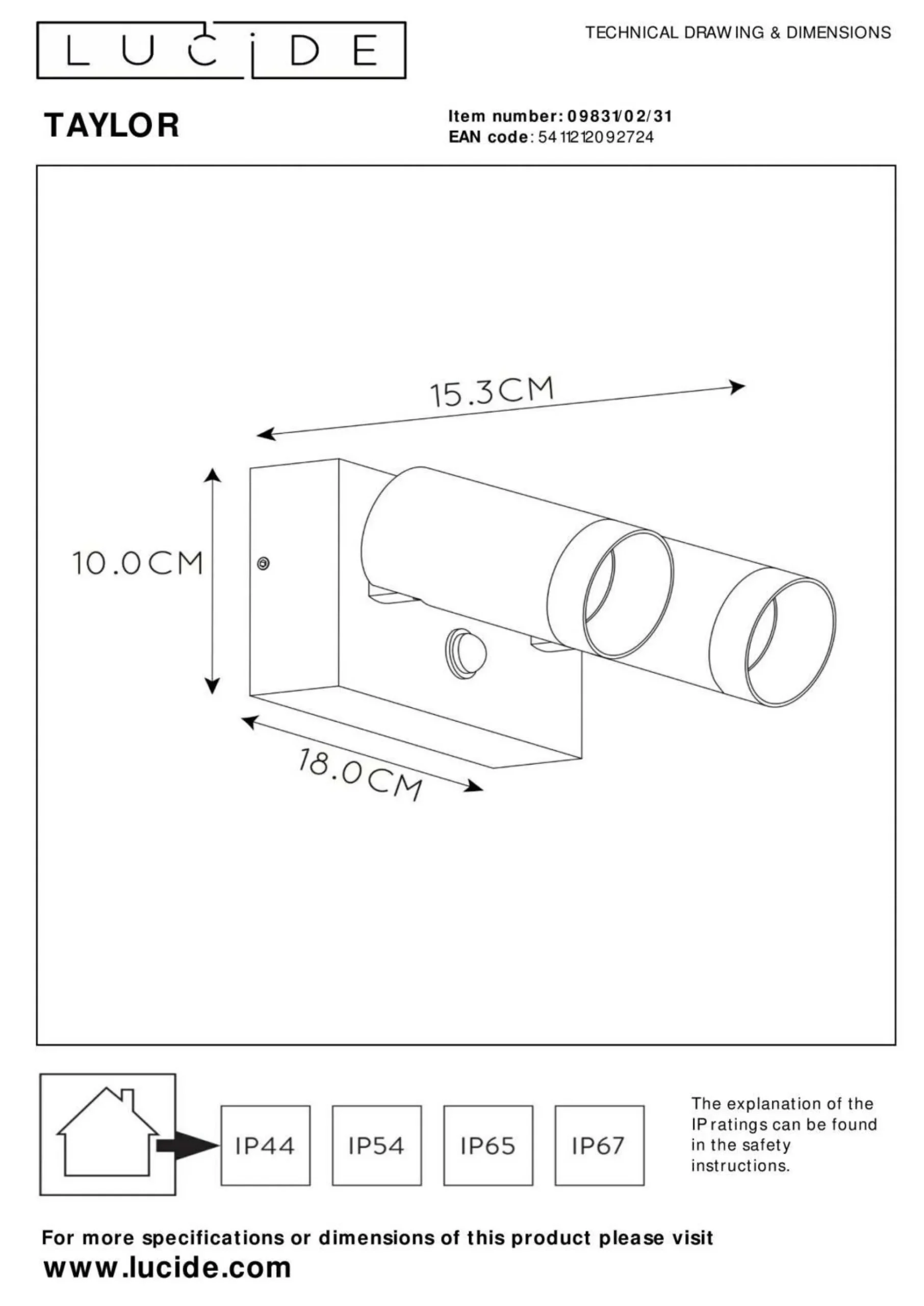 · Auch im Freien möchten Sie auch auf ein großartiges Design, technische Raffinesse und zuverlässige Qualität verlassen können. Taylor kombiniert diese Merkmale in einem modernen und zeitlosen Design. Dieser Wandstrahler aus hochwertigem Aluminium mit zwei Lichtquellen kann problemlos an einer Fassade angebracht werden. Die Materialien wurden sorgfältig für eine langfristige und zuverlässige Verwendung im Freien ausgewählt. Sie können beide Lichtquellen drehen und kippen, bis sie sich in der richtigen Position befinden. Dank des dezenten integrierten Bewegungssensors ist Taylor auch äußerst sparsam im Einsatz und enthüllt seine Geheimnisse nur dann, wenn der Strahler tatsächlich benötigt wird.