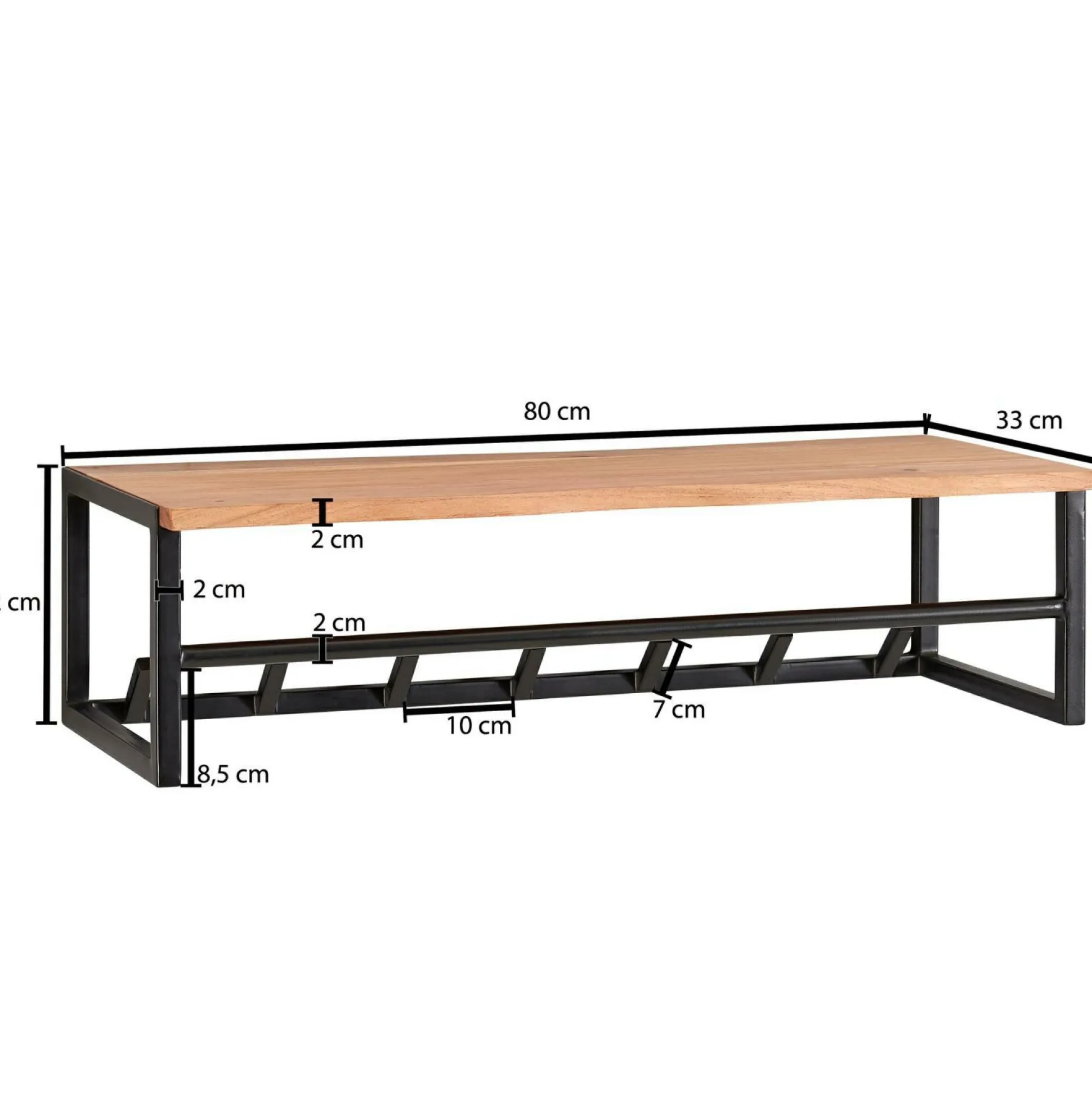 · Abmessungen – Materialstärke Holz: 2 cm, Materialstärke Metall: 2 cm, Weitere Abmessungen finden Sie im Maßbild.