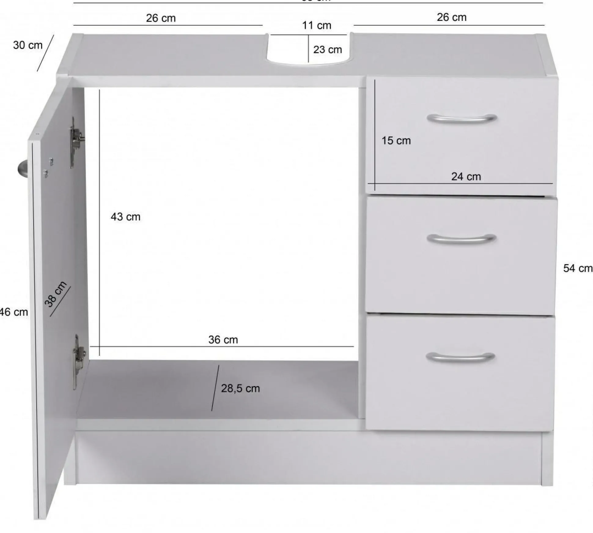 · Mit Siphonausschnitt – passend für alle handelsüblichen Waschbecken