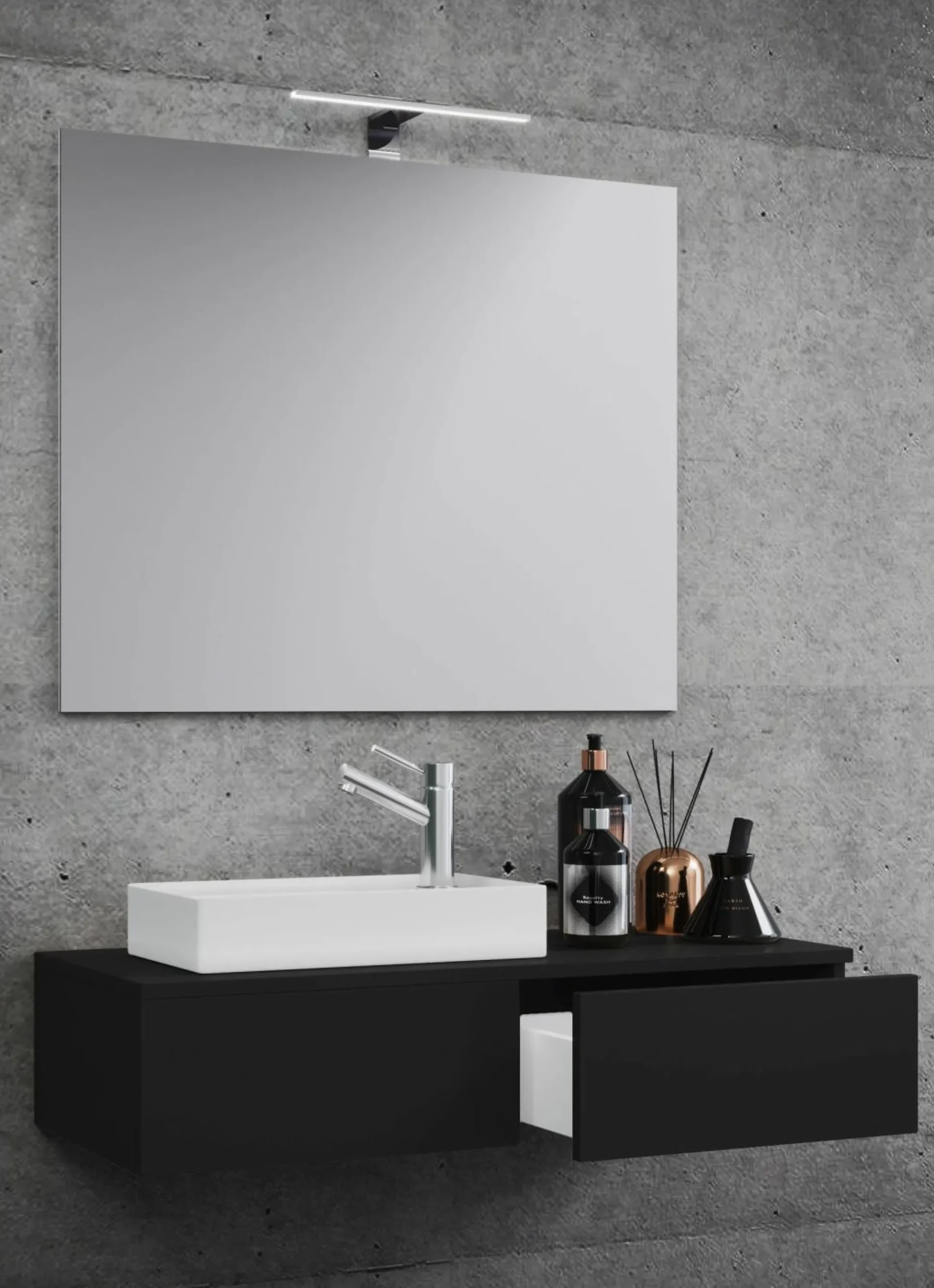 · Das Set besteht aus einem Spiegel und einem Waschbecken mit Waschbeckenunterschrank. Eine sehr elegante Einrichtungslösung für WCs oder Gästetoiletten, um ein optisches Highlight zu setzen.