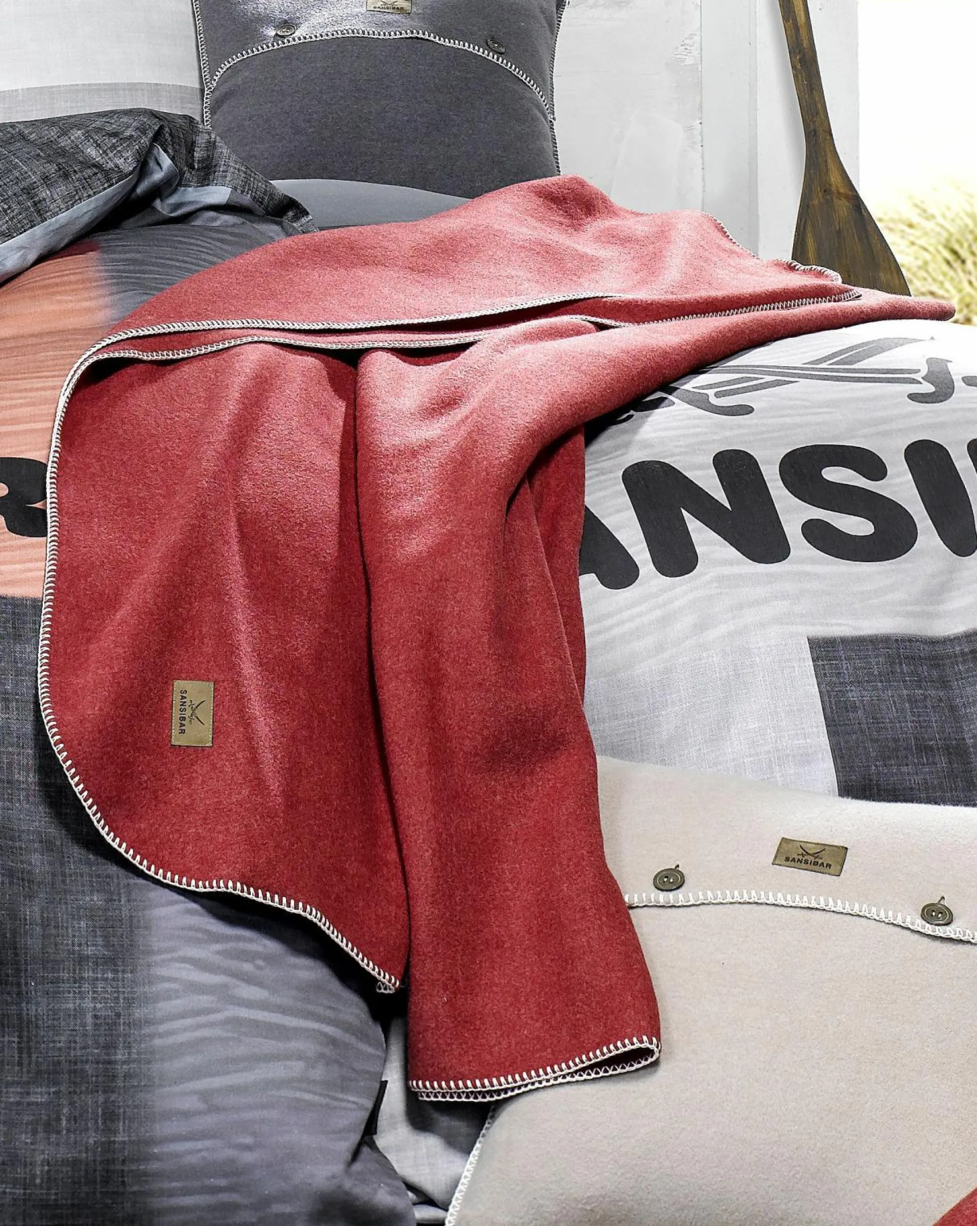 Die Wohndecke der Trendmarke SANSIBAR vollendet Ihren ganz persönlichen Komfort. In der Ausführung Polar Fleece verfügt die Decke über eine überzeugende Kombination aus Polyester und Viskose, die sich auf Ihrer Haut besonders weich und angenehm warm anfühlt. Die Wohndecke erscheint in einem leuchtenden Rot mit weißer Kurbelnaht und wird in jedem Wohnkonzept zum modernen Hingucker. Die Textilstärke beträgt 270 g/m².