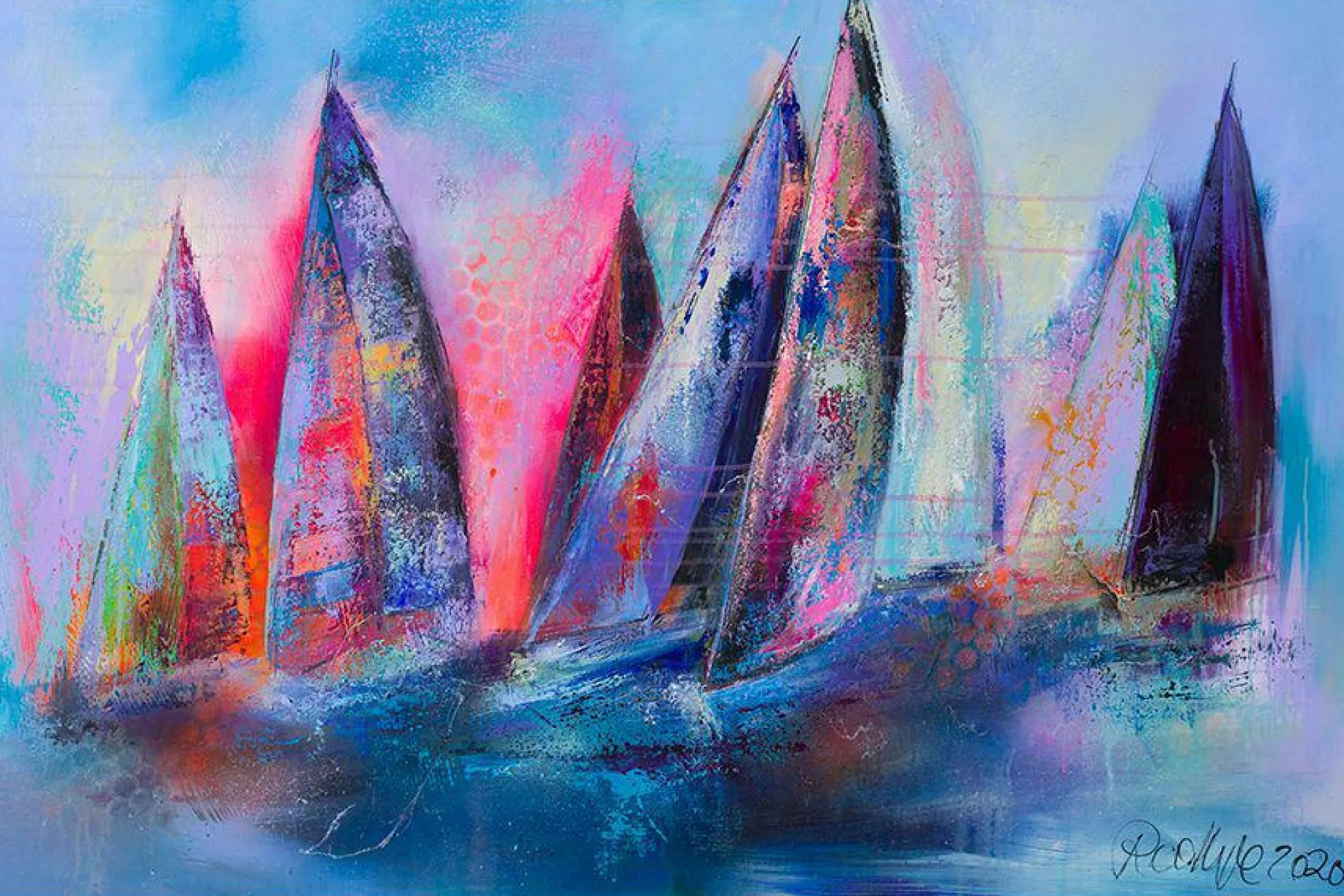 · Jedes Jahr gibt es nur ein Segelboot, das für die Kieler Woche, als Hommage an meine Geburtsstadt und als Liebe zum Wasser, gemalt wird. Das sportliche Ereignis in Schleswig Holstein findet jedes Jahr auf dem Wasser statt.