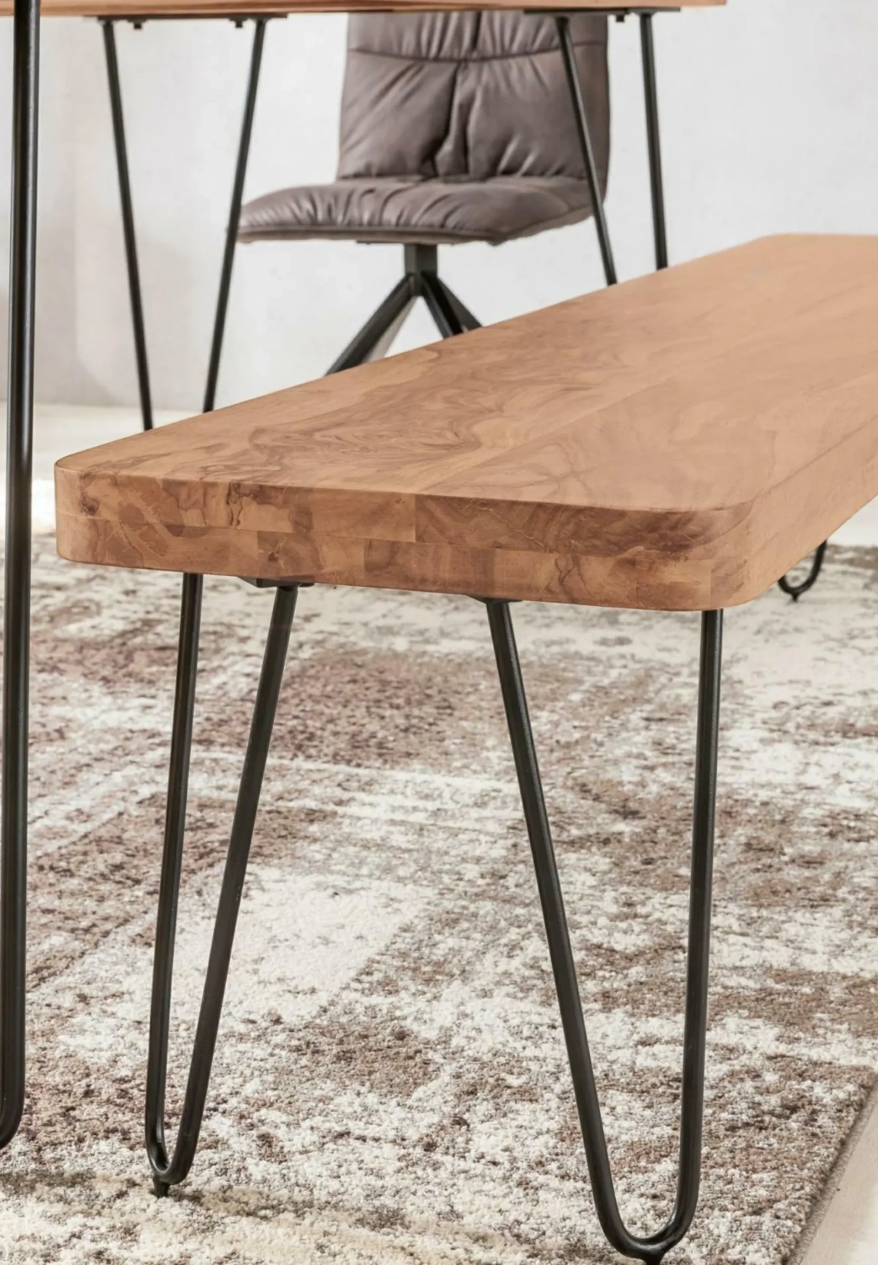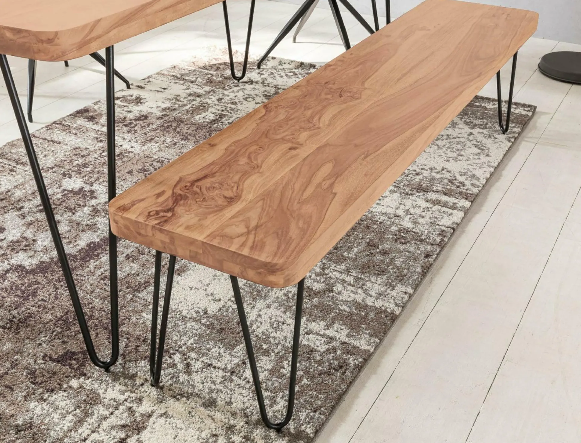 · Formschöne Küchenbank mit stabilem Untergestell und Querbalken als Fußablage