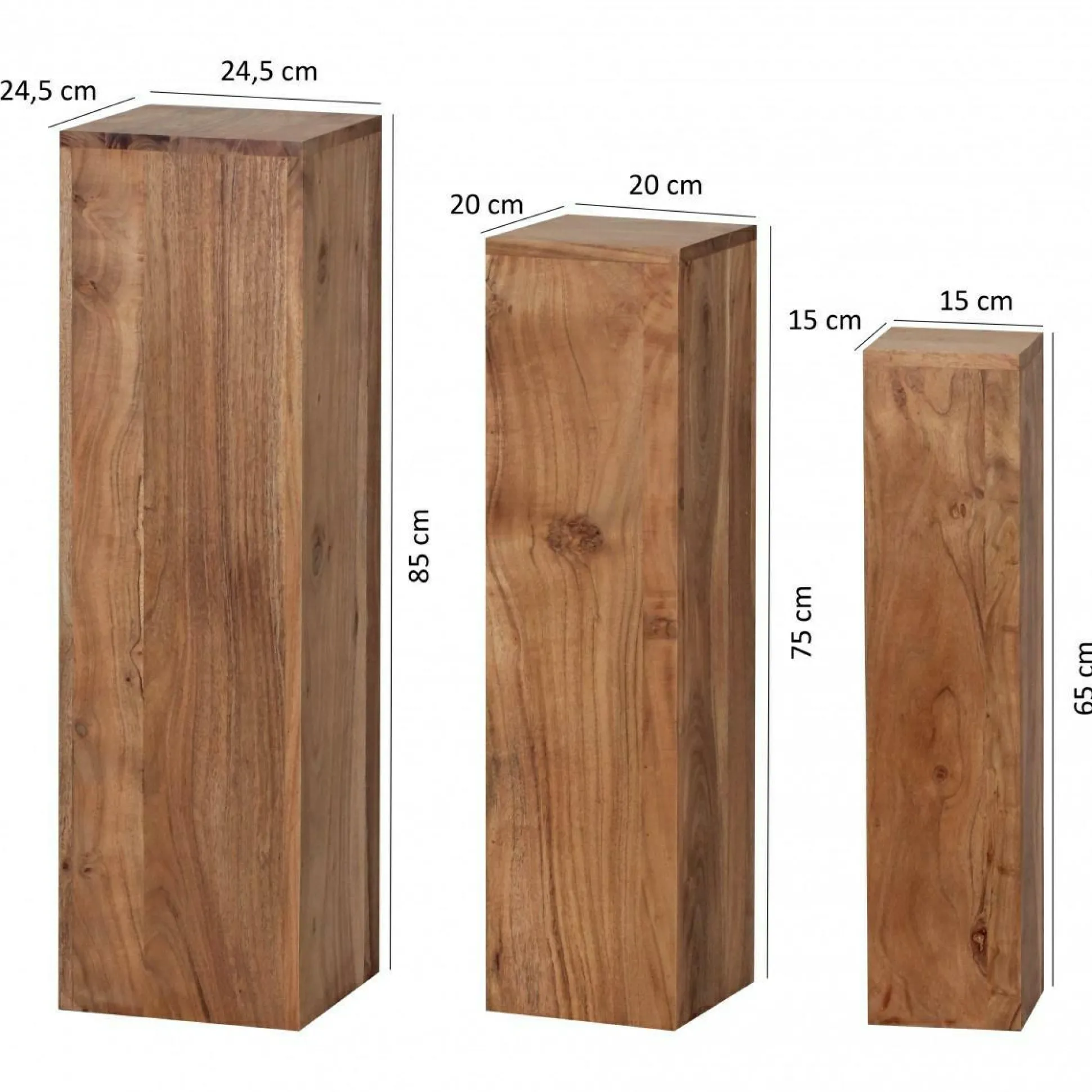 · Abmessungen – Mittlerer Tisch (BxHxT): 20x75x20 cm, Kleiner Tisch (BxHxT): 15x65x15 cm.