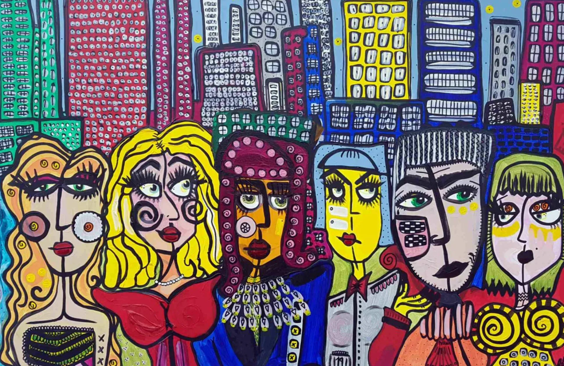 Motiv: Comic, Städte, Menschen