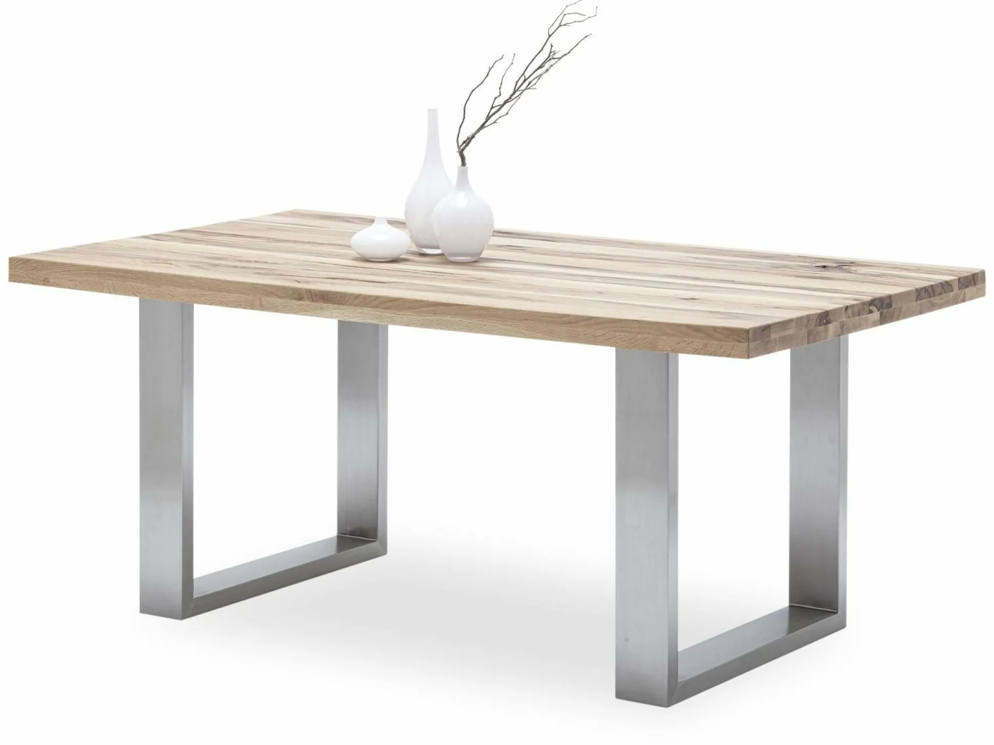 Der Esstisch Castello überzeugt mit hochwertigem Material und modernem Design. Bei diesem Tisch besteht das u-förmige Gestell aus Edelstahl und die Tischplatte ergänzt sich im Farbton Bassano ideal dazu. Da dieser Tisch ein schickes, schlichtes Design besitzt, ist er mit vielen Möbeln kombinierbar. An diesem Esstisch können Sie schöne Stunden mit Ihren Liebsten verbringen und leckere Mahlzeiten verzehren. Bekanntlich verbindet gemeinsames Essen in einer gemütlichen Atmosphäre!
