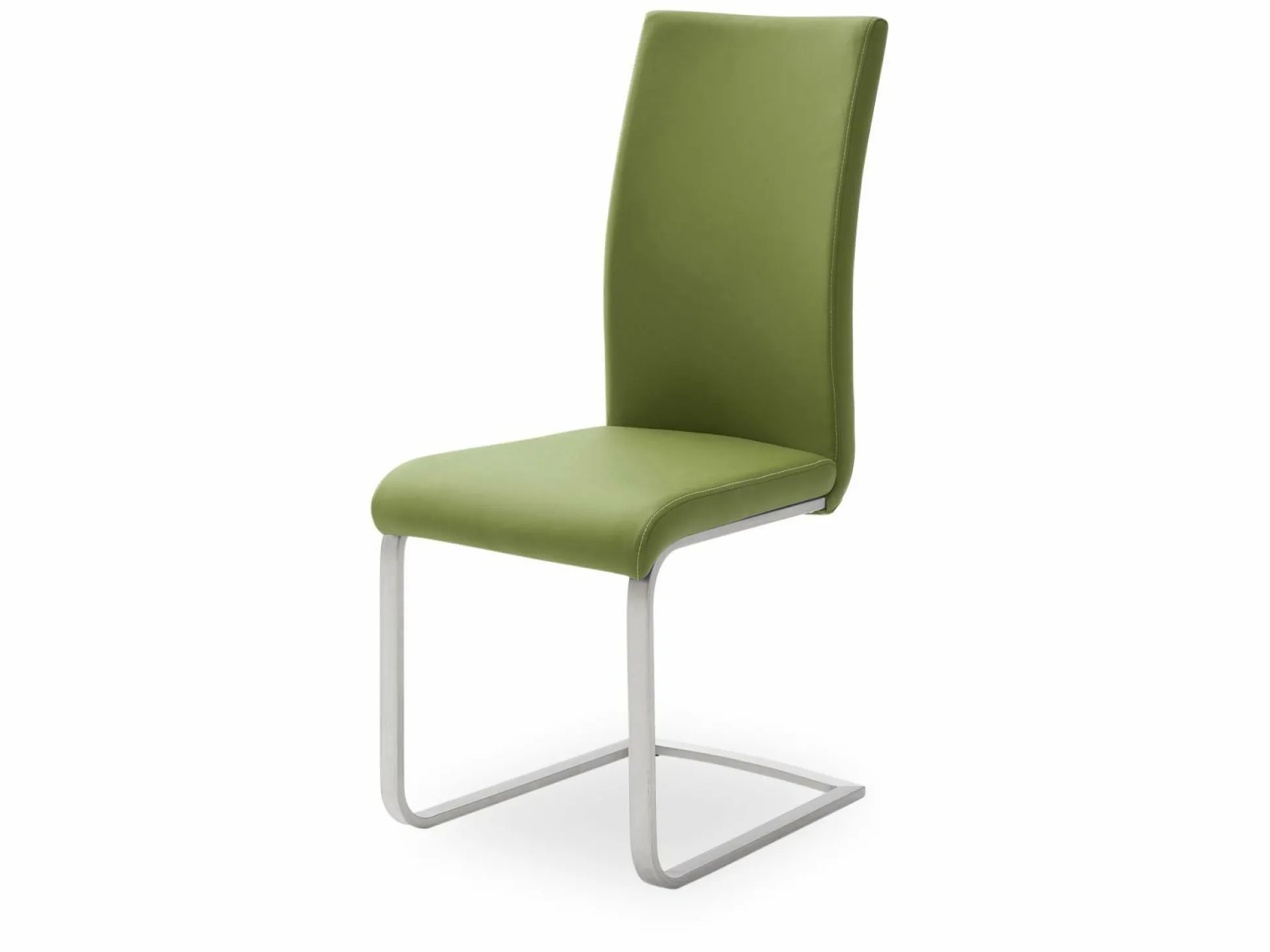 Der Freischwinger Paulo 1 präsentiert sich formschön, komfortabel und schick. Das Flachrohrgestell aus gebürstetem Edelstahl ist leicht flexibel, für einen angenehmen Sitzkomfort. Die bequeme Sitzhaltung wird ebenfalls durch den formvollendeten Rücken erhöht. Das Design, ein olivfarbiger Bezug im Lederlook, wirkt zeitlos schick. Ein attraktiver Stil, der passend zu jedem Einrichtungsstil ist.