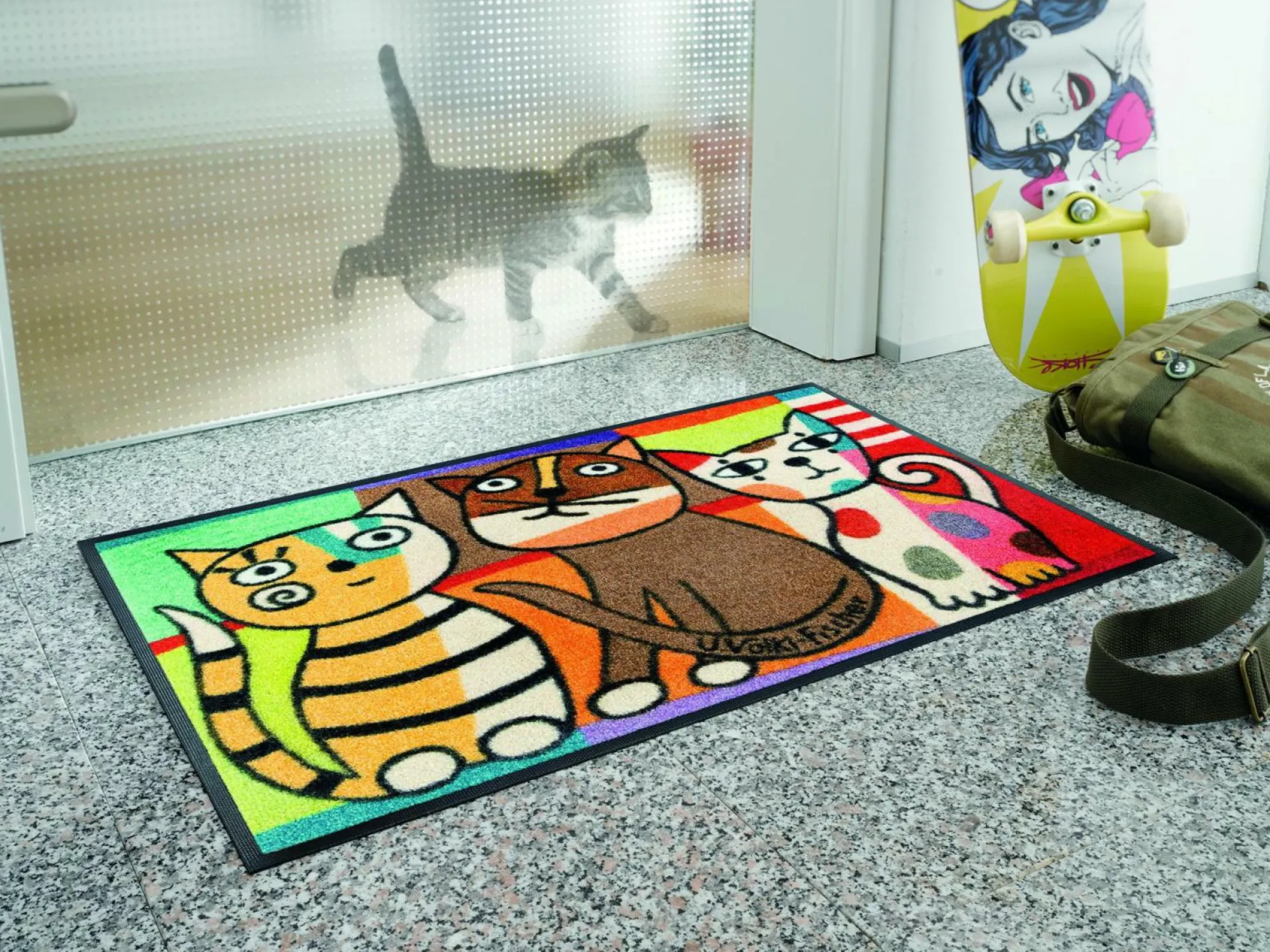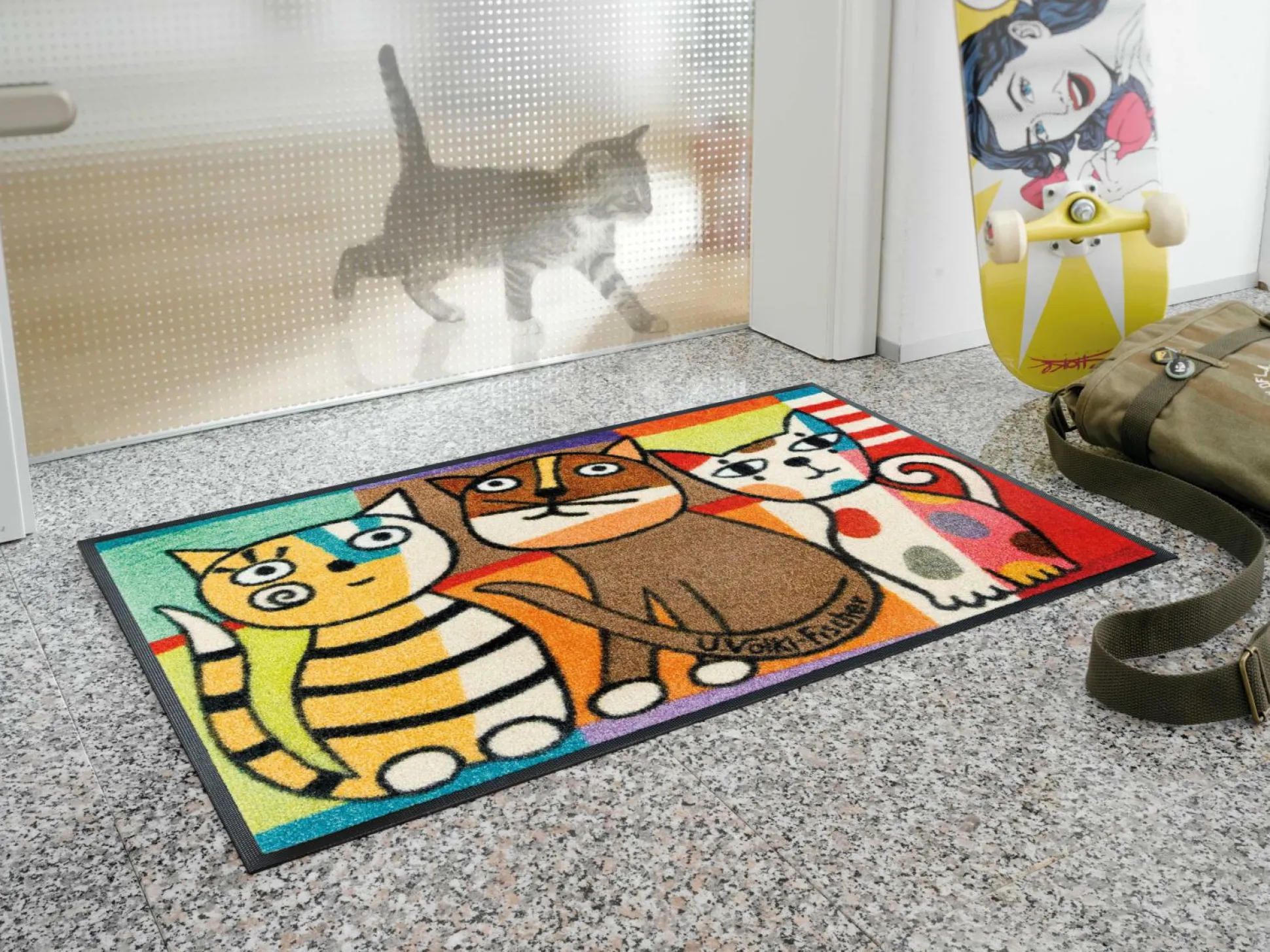 · Material Flor: 100% Polyamid Mit wash+dry Design sichern Sie sich waschfeste und trocknergeeignete Matten. Somit ist sie perfekt geeignet für Allergiker und Tierbesitzer. Die wash+dry Design Modelle werden in Europa produziert und haben einen Rücken aus 100% Nitrilgummi. Sie sind einfach zu pflegen, besonders flach und dicht im Flor, trittschalldämmend und rutschfest. Die Matten sind bis zu 60 Grad waschbar und sogar bis zu 90 Grad trocknergeeignet. wash+dry Design vereint Qualität sowie hochwertige, strapazierfähige und zeitlos elegante Modelle in zahlreichen Varianten. K2 Vor dem ersten Gebrauch waschen Sie Ihre wash+dry Design Fußmatte separat gemäß Pflegeetikett mit 60°C und Feinwaschmittel. Dadurch richten sich die Fasern auf, der Mattenflor wird aktiviert und transportbedingte Falten und Knicke werden wieder glatt. Schleudern Sie die Matte auf niedriger Stufe mit ca. 800 Umdrehungen. Geben Sie die Fußmatte in den Trockner und wählen Sie max. 90°C oder das Programm wählen Pflegeleicht oder Mischgewebe. Alternativ zum Trockner können Sie die Matte auch flach zum Trocknen auslegen. Bitte beachten Sie die jeweilige Höchstlast Ihrer Elektro-Geräte. Pflegen Sie so Ihre wash+dry Fußmatte 3 bis 4 Mal im Jahr(bei starker Belastung auch