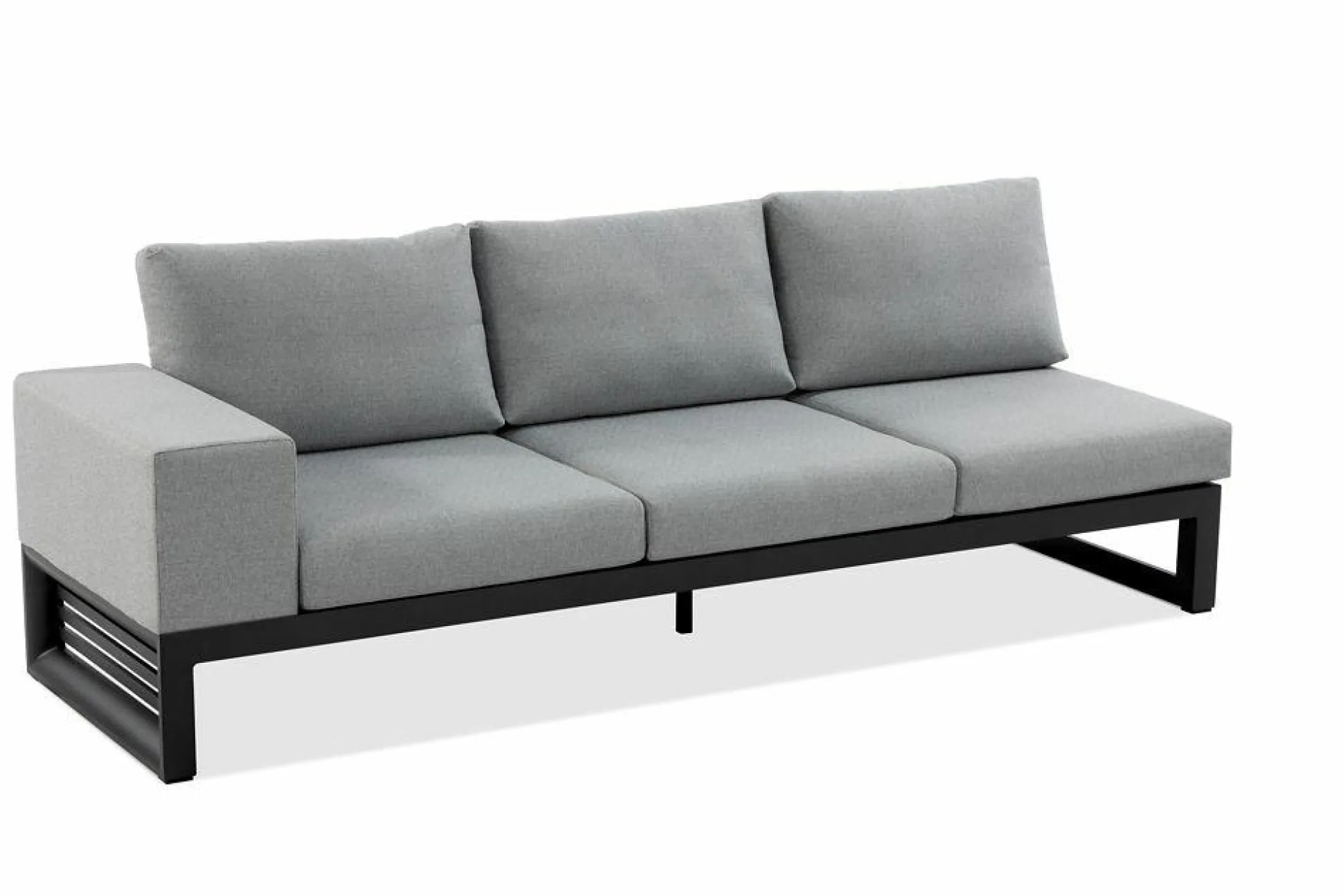 · Loungegruppe MALTA 3-Sitzer Sofa, durch flexible Positionierung der Rückenlehne ist das Sofa links- und rechtsseitig nutzbar, Sitz- und Rückenkissen Bezug River 766, Gestell Aluminium pulverbeschichtet, Farbton anthrazit, B 230 T 80 H 80 / Sh 40 cm