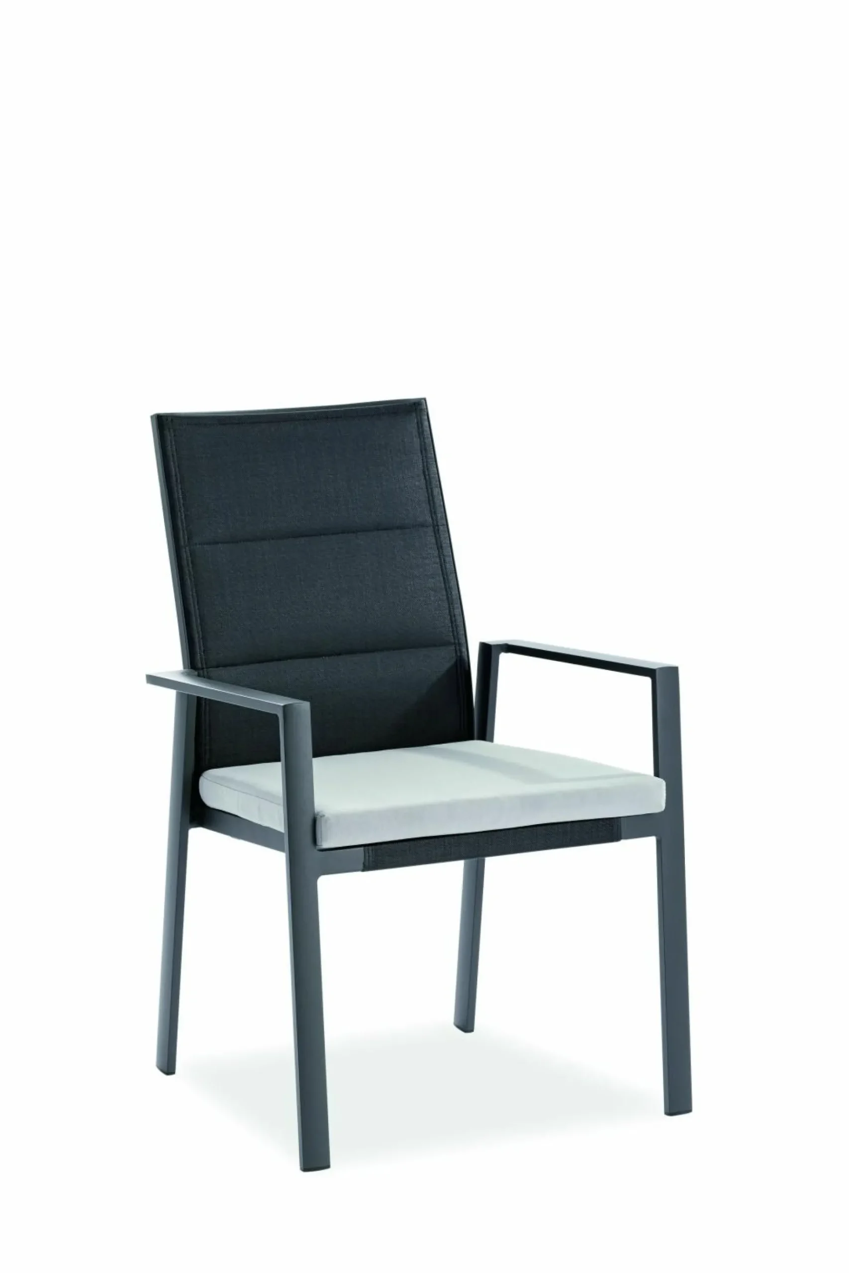 · Hochlehner NANCER Sitz Textilen schwarz, Rücken Textilen schwarz gepolstert inkl. Sitzkissen, Bezug grau, Gestell Aluminium pulverbeschichtet, Farbton anthrazit, stapelbar, 62×61 / 96 cm