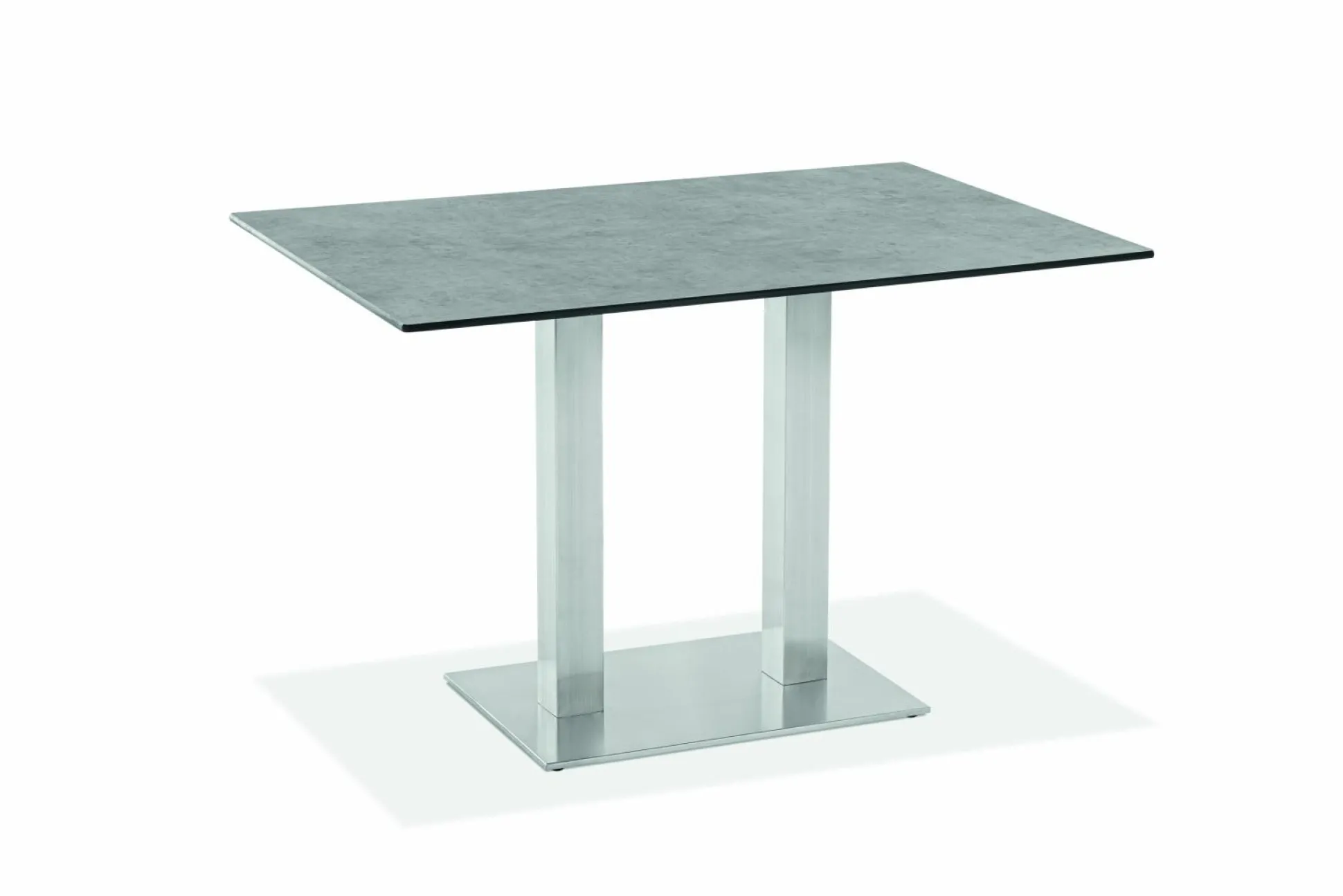 · Tisch BISTRO Tischplatte HPL Zement, Gestell Doppelprofilsäule rechteckig Edelstahl gebürstet.