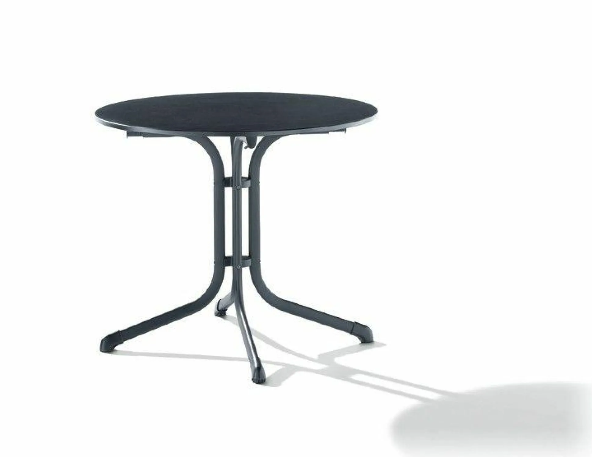 · Der Boulevard-Klapptisch 3135-55 hat ein eisengraues Gestell aus polyesterbeschichtetem Profil-Stahlrohr mit einer Rohrstärke von 35 x 28 mm und eine formschöne vivodur®-Schieferdekorplatte in anthrazit. Die Tischplatte hat einen Durchmesser von 85cm. Durch die Polyesterbeschichtung wird das Gestell unempfindlich gegen Witterungseinflüsse. Die Höhe des Tisches beträgt ca. 73 cm. Damit der Tisch auch auf unebenen Flächen einen festen Stand hat, wurde er mit einem Höhenausgleich ausgestattet. Durch seine Klappfunktion ist der Tisch sehr einfach in der Handhabung. Ein weiterer Pluspunkt für diesen Artikel ist, dass er montagefrei angeliefert wird. So können Sie den Tisch sofort nach Erhalt problemlos in Gebrauch nehmen. Insgesamt profitieren Sie bei diesem Artikel von der jahrzehntelangen Erfahrung die SIEGER bei der Herstellung von Gartenmöbeln vorweisen kann. Der Tisch lässt sich ideal mit Möbeln aus dem SIEGER-Sortiment kombinieren!