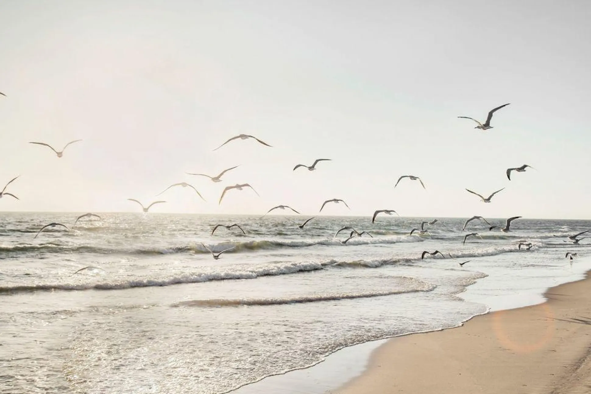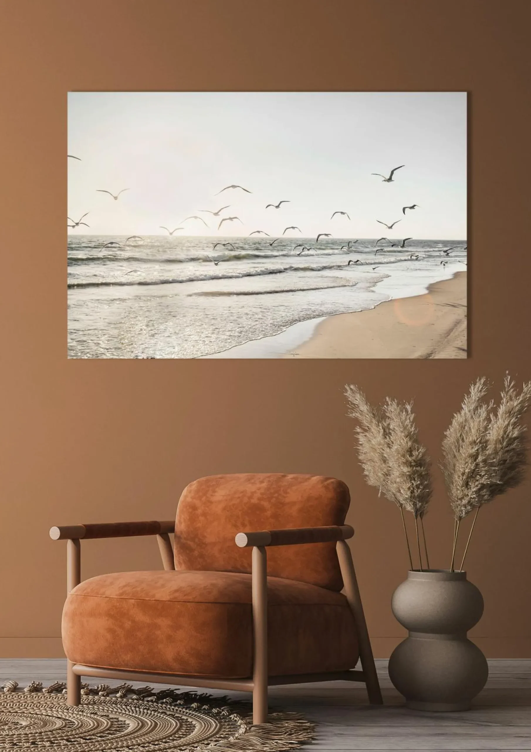 Tauchen Sie ein in die faszinierende Welt des Meeres mit dem Glasbild “MÖWEN ÜBER DEM MEER“. Der Digitaldruck auf Sicherheitsglas fängt die Schönheit dieser Szene perfekt ein. Die beruhigenden Töne von Beige bringen eine harmonische Atmosphäre in jeden Raum. Genießen Sie die ruhige Eleganz dieses Kunstwerks und holen Sie sich die natürliche Schönheit des Meeres in Ihr Zuhause.