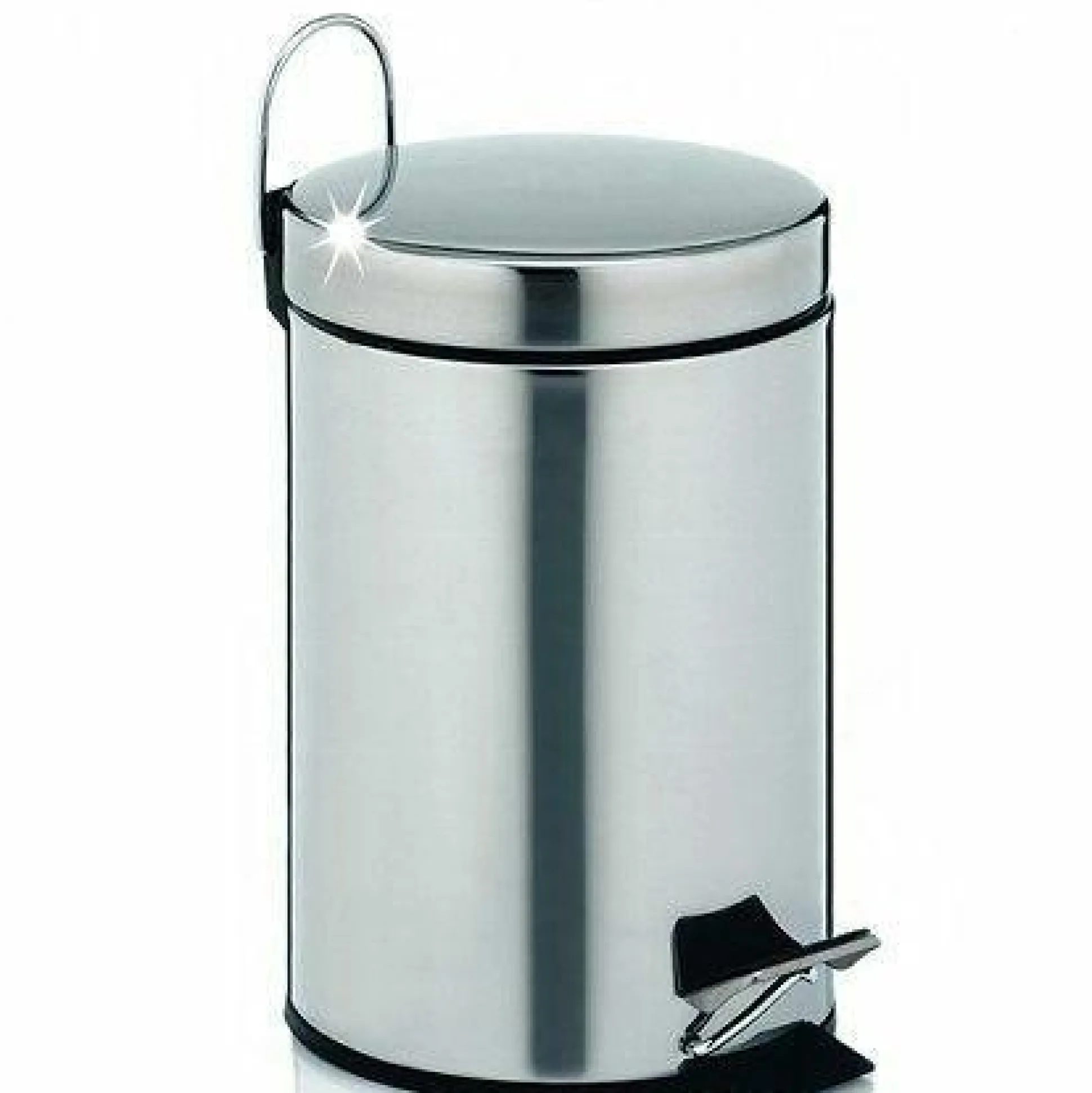 Hochwertiger Kosmetikeimer aus stilvollem Edelstahl mit Tretmechanik, 26 cm hoch, 17 cm Durchmesser.