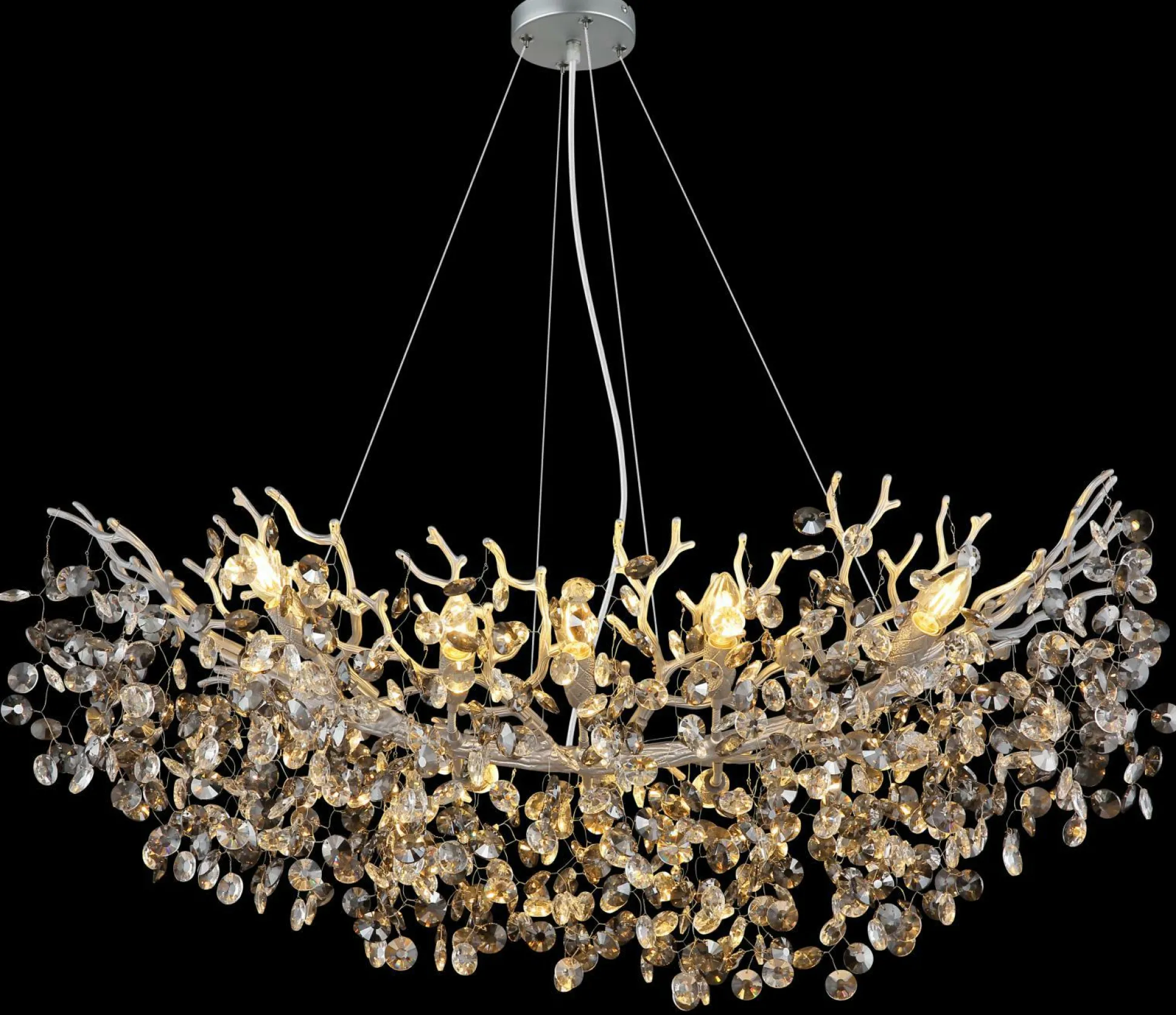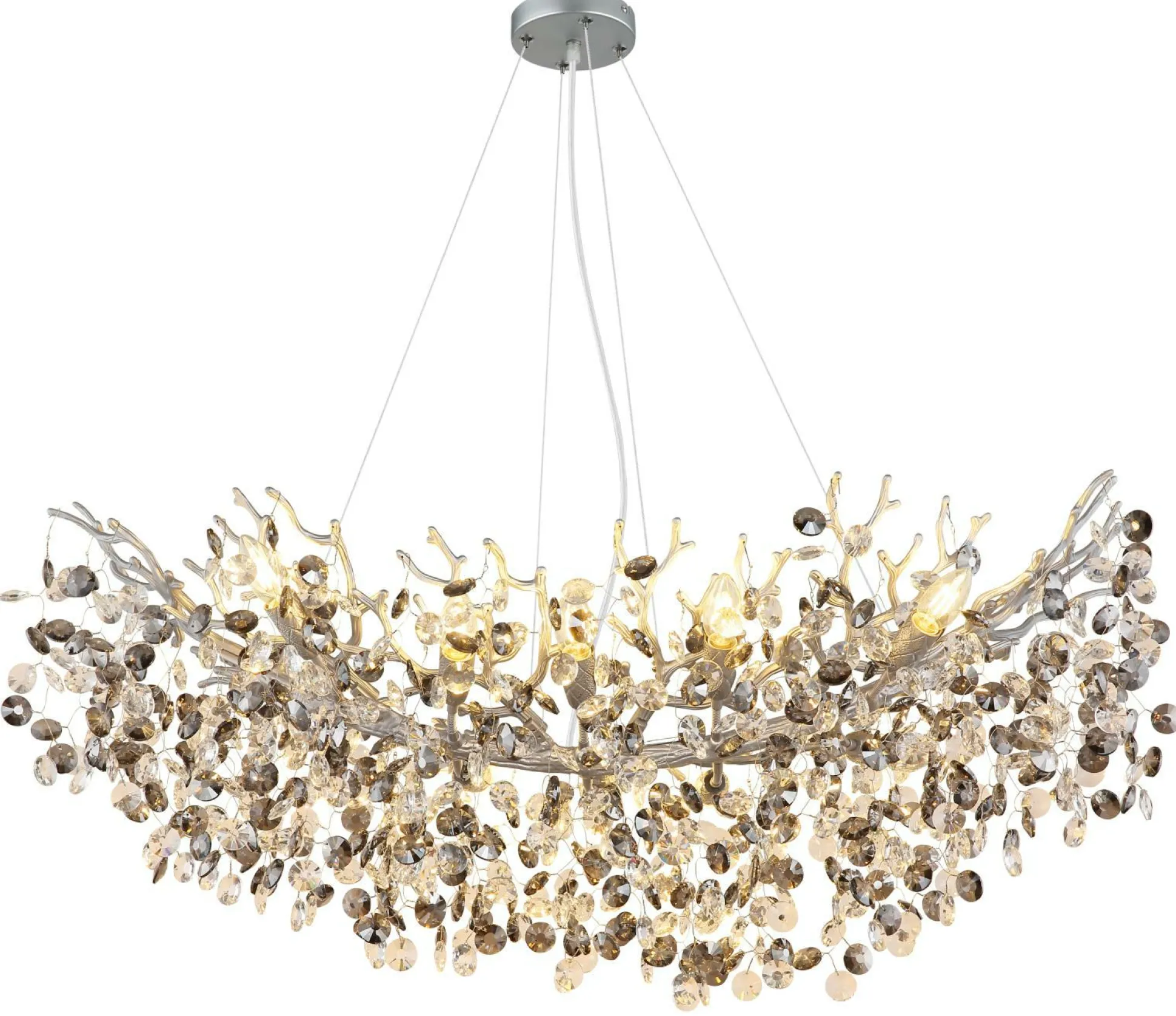 Diese Hängelampe verleiht auch Ihrem Zuhause das gewisse Etwas. Das hübsche Aussehen der Hängelampe fügt sich problemlos in Ihre Einrichtung ein und gibt dabei schönes Licht für ein individuelles Wohnambiente ab. Holen Sie sich mit dieser Hängeleuchte die GLOBO-Lighting-Markenqualität in Ihre vier Wände. Die Hängelampe misst in der Breite insgesamt 45 Zentimeter, besitzt eine Länge von 100 Zentimetern und ist 150 Zentimeter hoch. Diese Leuchte lässt in jedem Wohnraum ein hervorragendes Ambiente entstehen und bringt einen gemütlichen Touch in Ihre Einrichtung. Sie können Leuchtmittel mit einem E14-Sockel in die Lampe einsetzen. Auch in puncto Materialqualität besticht die Lampe aus Glas. Die Hängeleuchte im modernen Design ist eine dekorative Möglichkeit, Ihren Wohnraum zu beleuchten, und somit eine tolle Wahl. Auch im ausgeschalteten Zustand kann sie als Dekoration dienen.