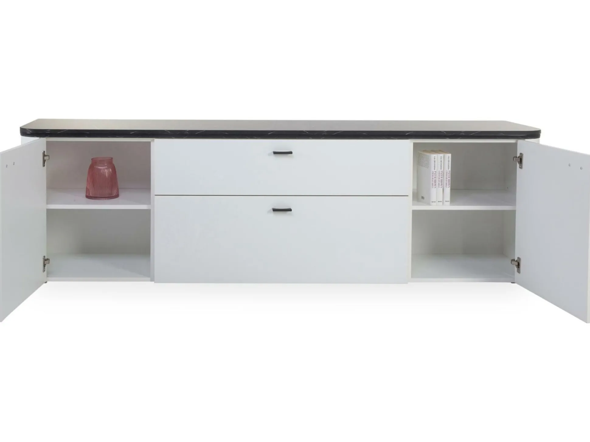 · mit zwei Holztüren, zwei Schub- kästen und zwei Holzeinlegeböden