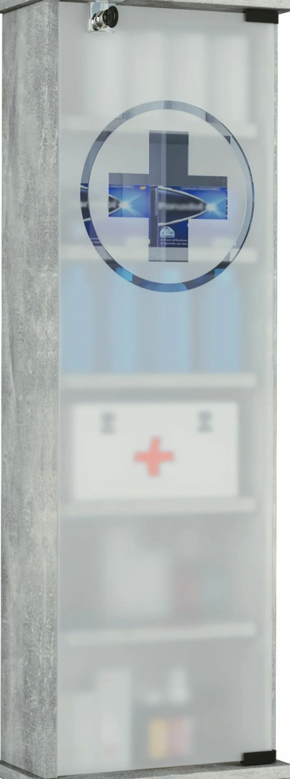 · Das Medizinschrank “Omal“ von VCM besteht aus einer Holzstruktur-Nachbildung mit einer eleganten ESG-Sicherheitsglastür, welche durch ein Türschloss auch verriegelt werden kann.