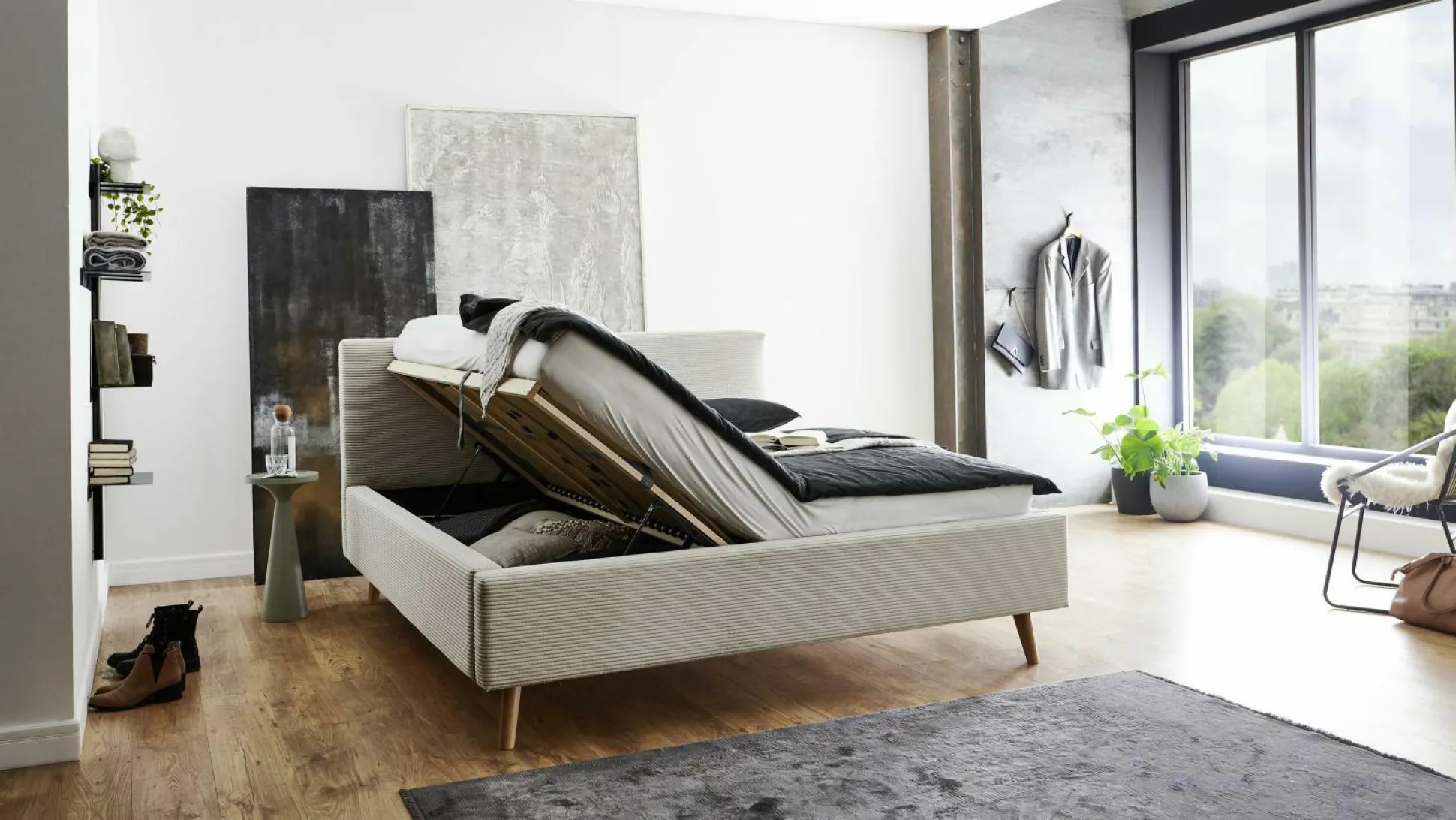 · inkl. Bettkasten mit seitlich zu öffnenden Federholzrahmen mit 28 Leisten, starr
